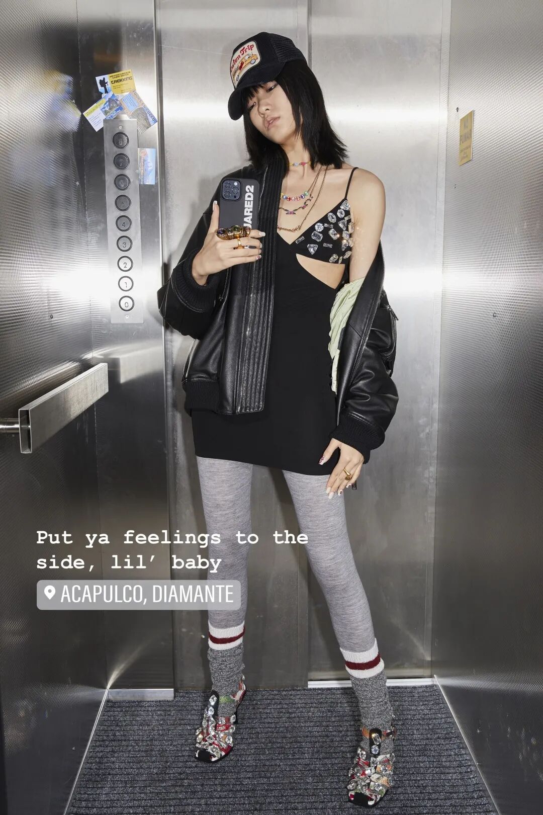 似乎对着电梯自拍可以满足人们的表现欲,又不会有旁人注视的尴尬,因此形成了社交媒体上的“暗流”。在2022早秋系列,Dsquared2 用了Instagram上最火的#elevatorselfies方式诠释型录。