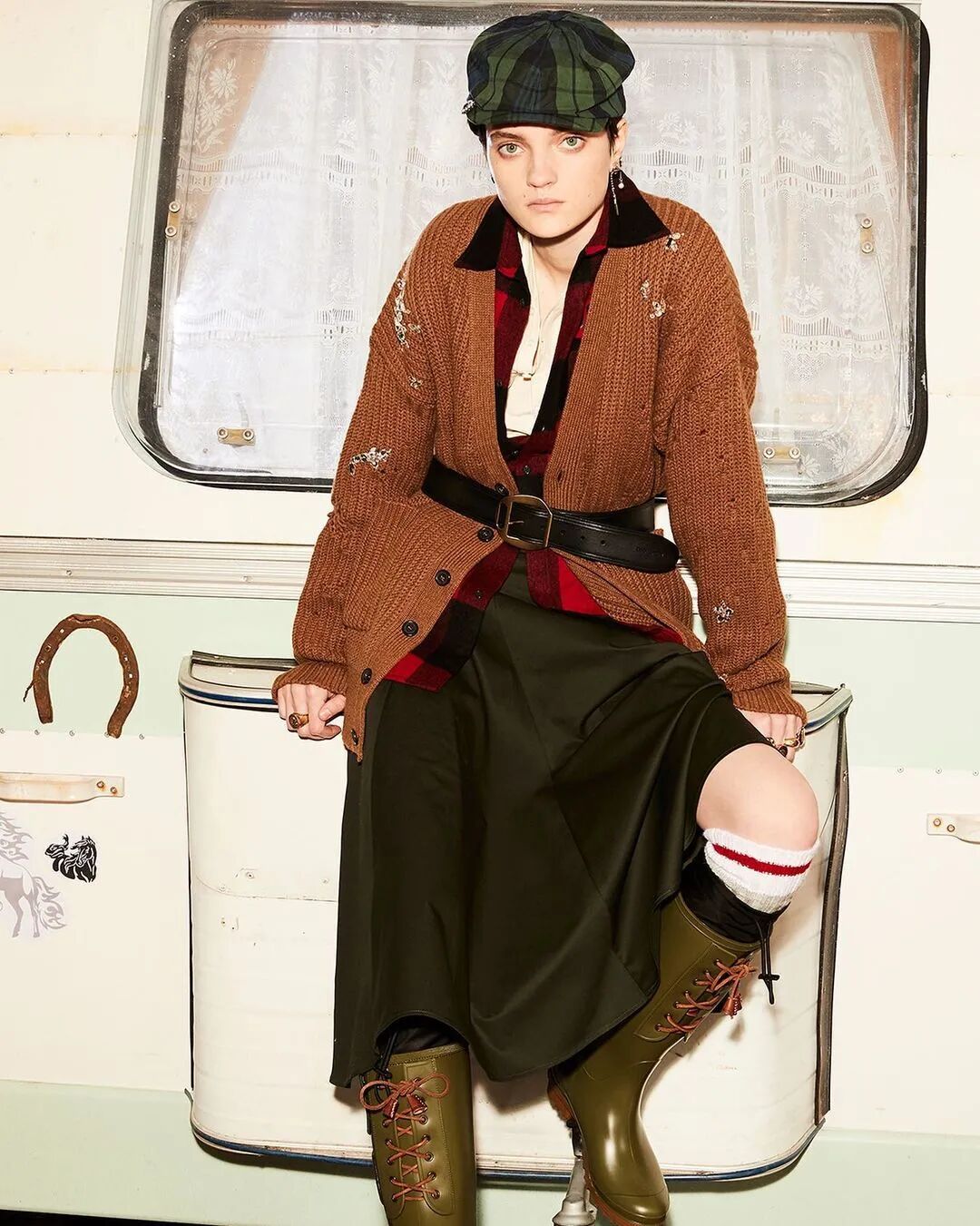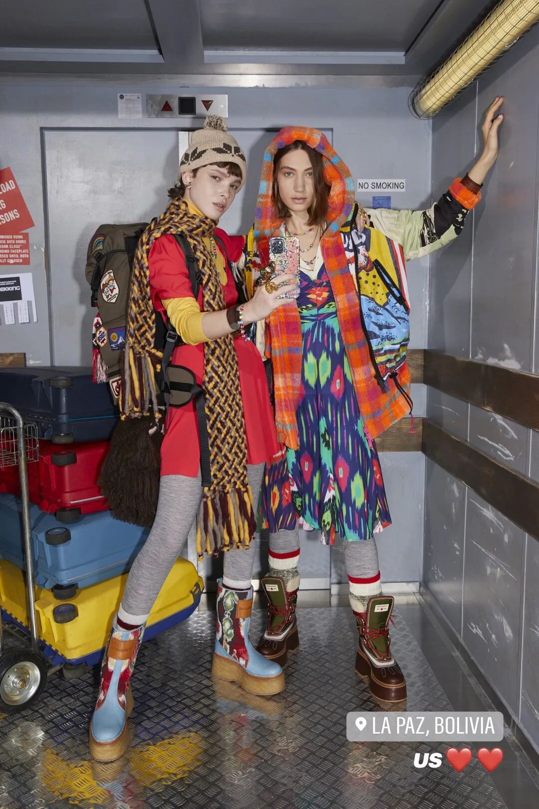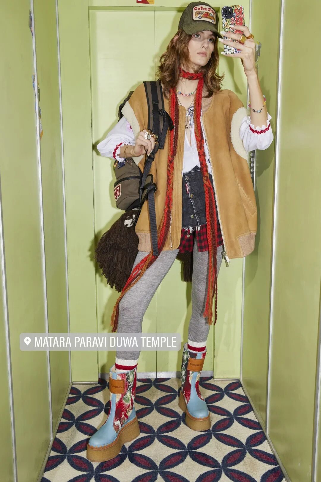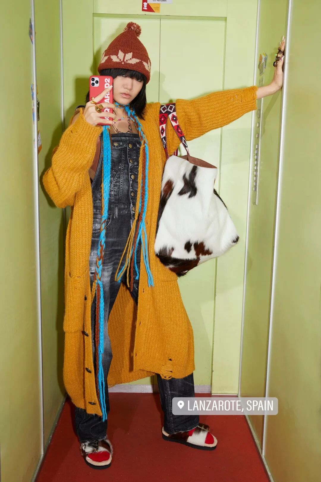 或是邋遢、或是复古,那电梯内塞满的行李箱、超大夹克包裹下的破碎感的针织上衣,牛仔裤搭配着的绒面拖鞋,裤子上绗缝并针刺了印花手帕,裙子上点缀着的民族风的印花,都集结着不同背景、不同文化的艺术与审美。
