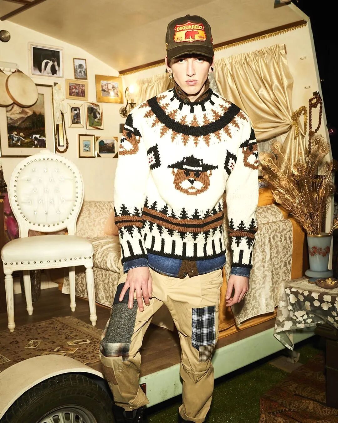 Dsquared2推崇着的繁复与层叠的穿搭方式,给人以戏剧性的美感。“生在加拿大,住在伦敦,制造在意大利”,受着不同文化与背景的冲击,Caten兄弟也对时尚有着特殊的理解。