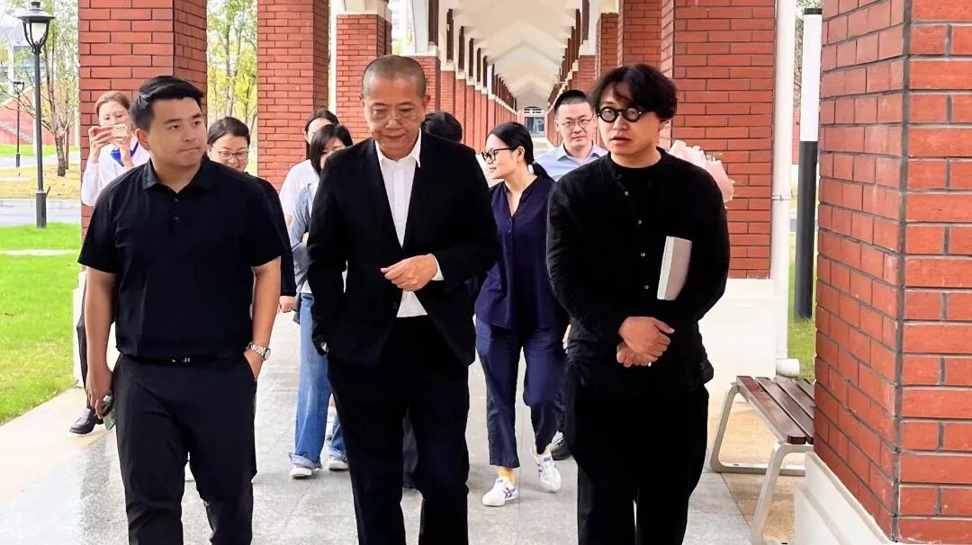 ▲ 子竣在世恒校园内与前辈们探讨美育发展