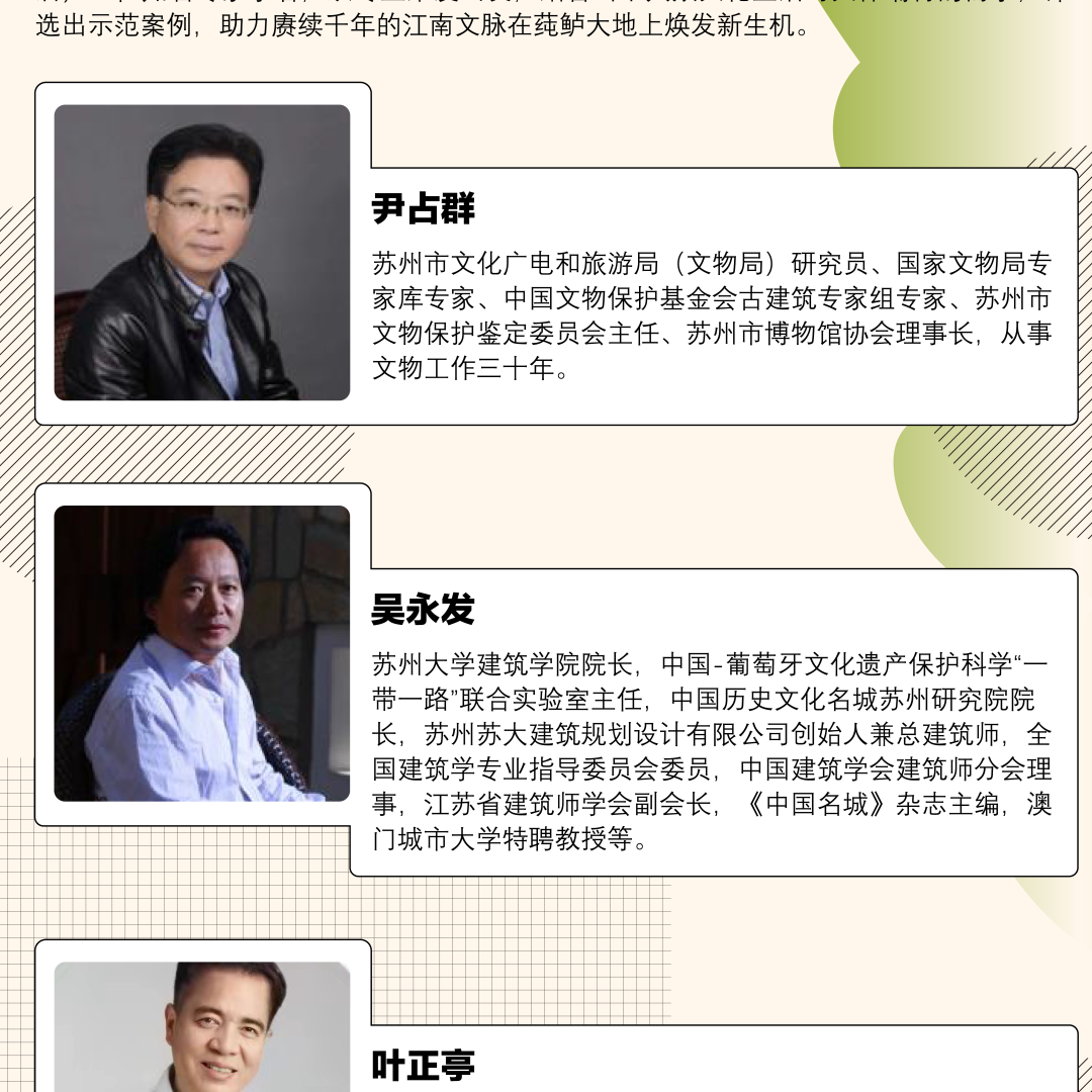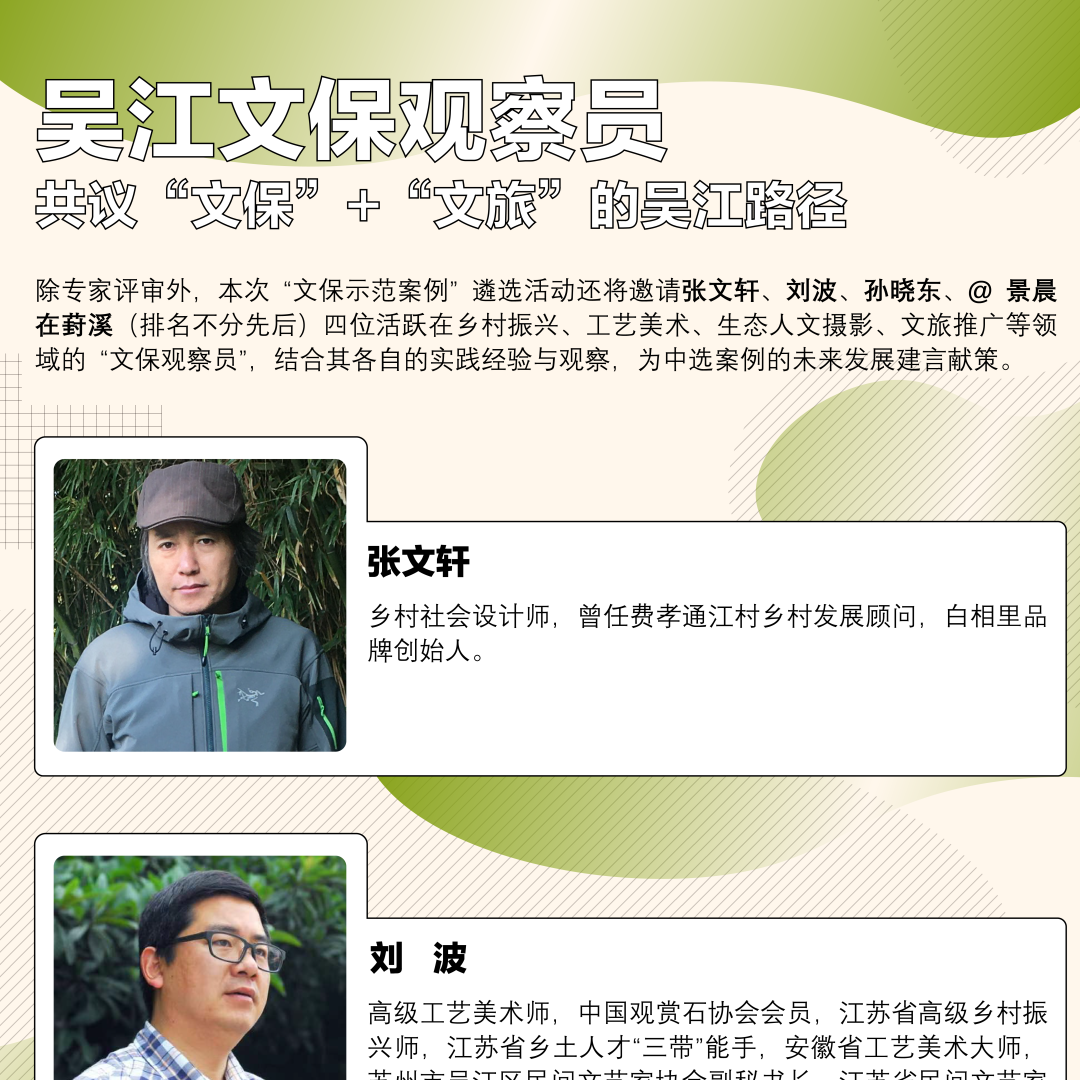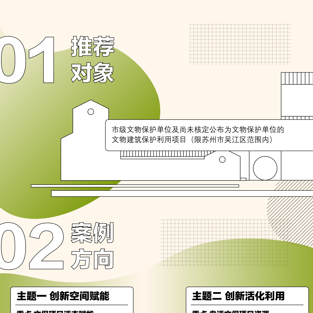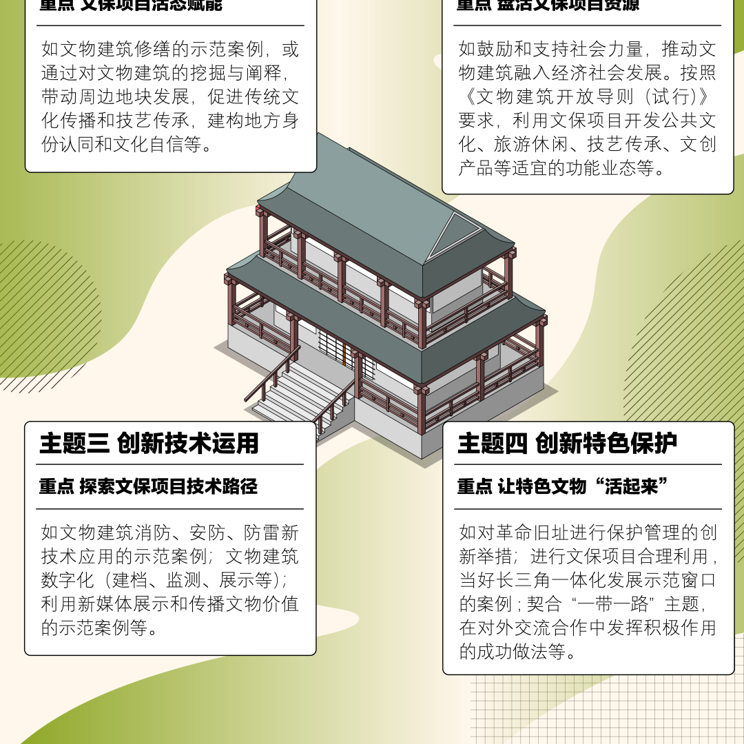 此次文保评选活动的案例征集涵盖“创新空间赋能”、“创新活化利用”、“创新技术运用”、“创新特色保护”四大主题,聚焦文物保护利用改革重点工作任务,集中展示吴江文保项目修缮、活化、利用工作取得的成绩及可应用、可推广的经验做法。