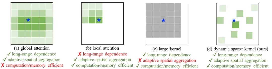 相比MHSA与形变注意力,该算子集成了CNN的归纳偏置;