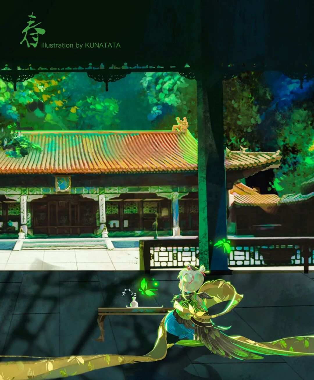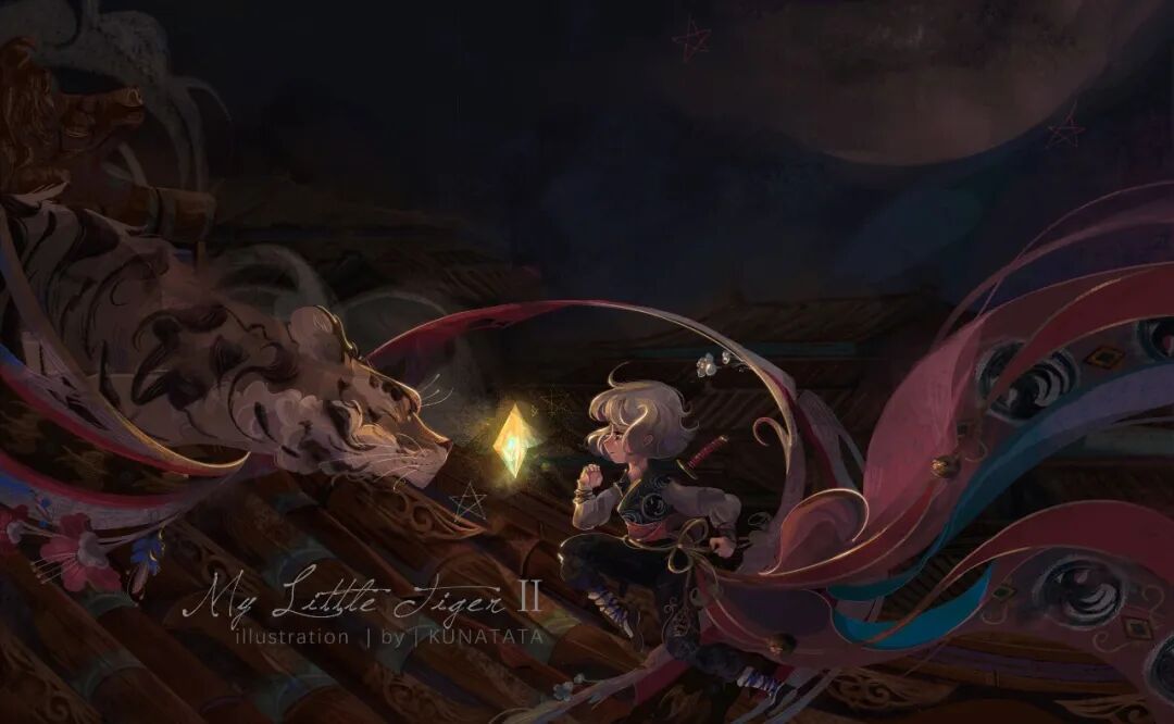 一幅插画就是在向大家阐述一个故事,如果观者看我们的画面就可以读出一个故事,感受到故事中的情绪、绘者想要表达的内容,这是一件很浪漫的事情。KUNATATA老师在绘画中所追求的就是画面的故事性和整体的浪漫主义