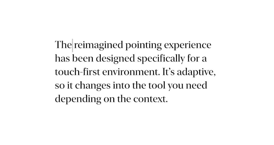 为了让 iPad Pro 的两套操控方式能够很好地融合到一起,苹果的设计师完全改变了光标的体验。