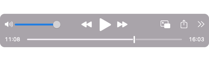 桌面端软件 QuickTime Player 也有类似的播控按钮,但是图标间距更小,这是为了更方便光标的像素级操作: