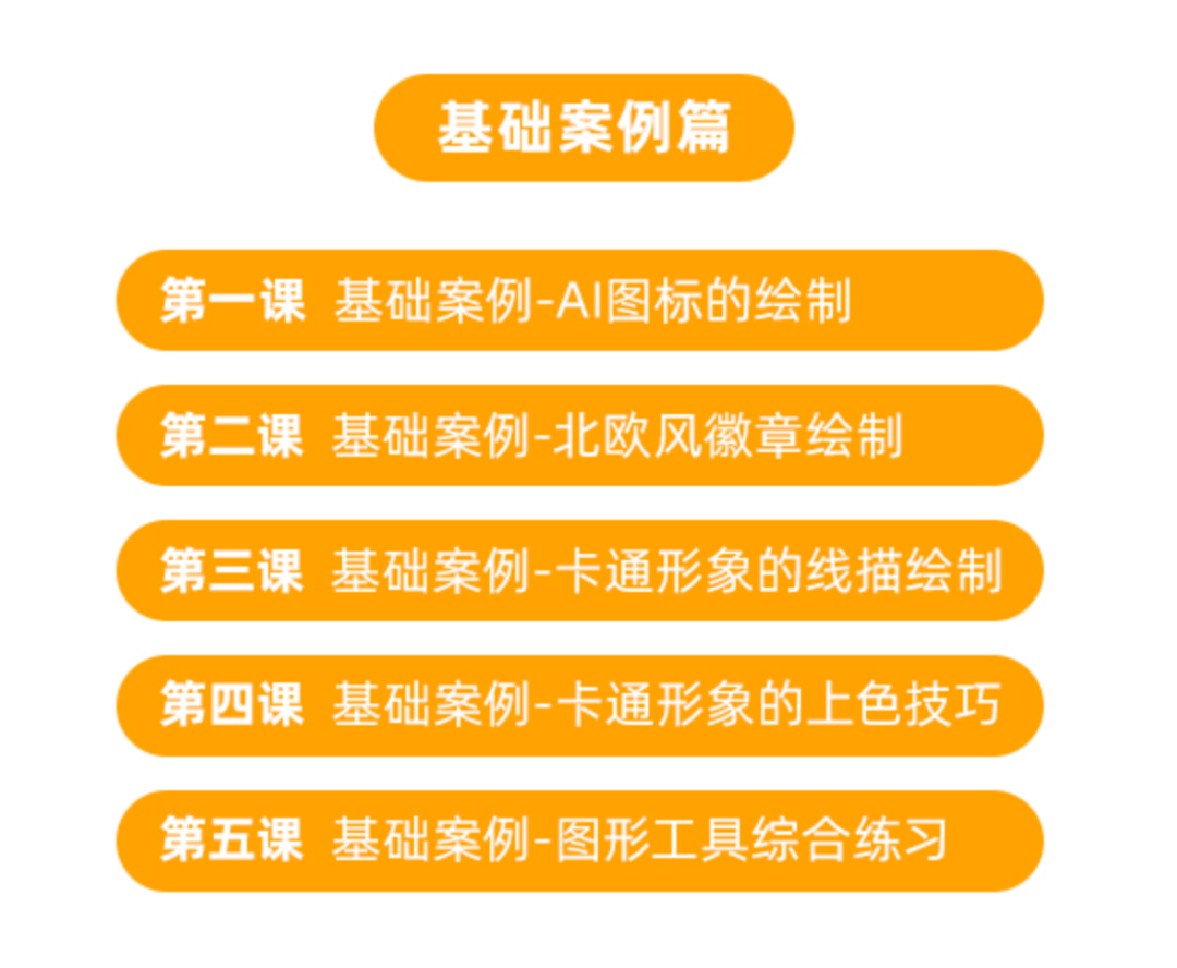 这套卡通IP形象课程,全实操的课程内容分为基础案例篇和形象设计篇,在基础案例中巩固ai的软件操作,在形象设计篇中学习IP形象设计的流程和设计思维。
