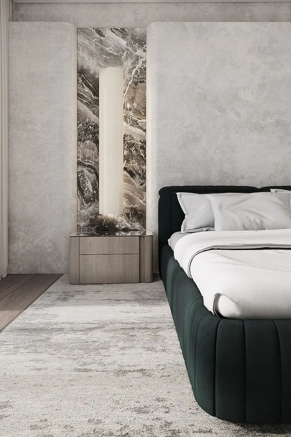 The interior color of the second bedroom is very harmonious. The line pattern of the background wall at the head of the bed adopts abstract principles. The artistic atmosphere is extremely strong, full of vitality, extremely simple design style, rendering a quiet atmosphere, and the artistic craftsmanship is extremely high.