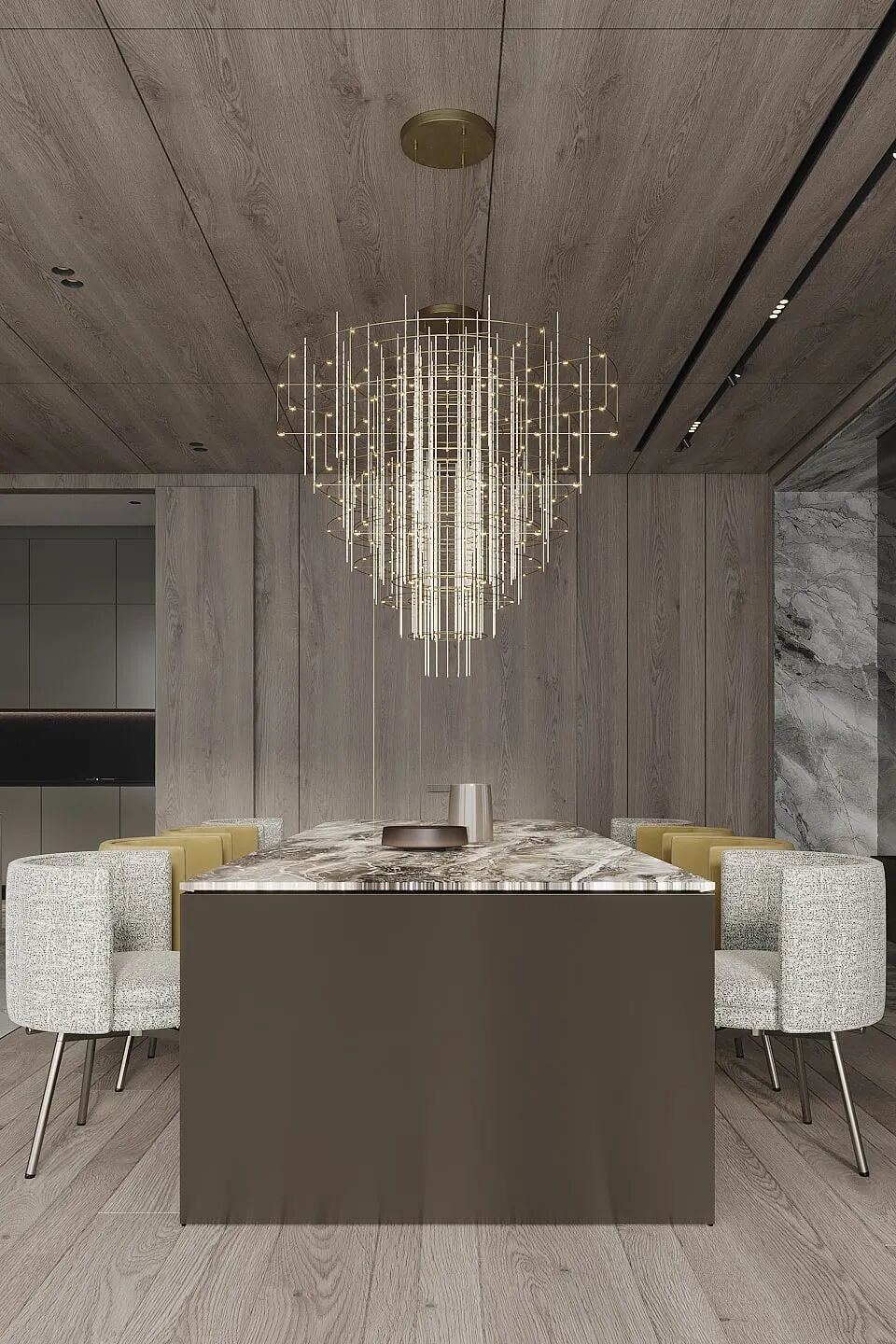 The space in the living room is very bright, and the floor-to-ceiling windows bring enough light to make the living room extra spacious and bright. Wood panels, as Kiev, have created a natural and comfortable modern residence incisively and vividly.