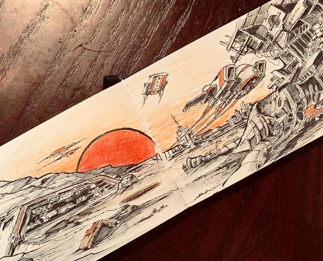 来自美国的3D高级概念设计师,拥有17年从业经历,去年年底从暴雪首席设计师跳槽到英伟达。从Blur Studio首席场景师到如今,主要负责不少电影和动画项目,例如《星球大战》IP作品等等。IT系出身建模3D都是靠自学,擅长绘制场景和道具硬表面,工业氛围拉满,故事性强,画面有种清冷的高级感。