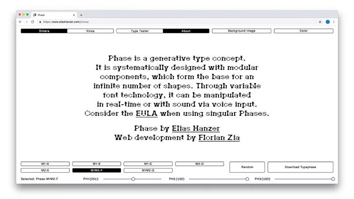 Phase是Elias Hanzer设计的字体生成型工具,可以通过手动或声音来操作字体。