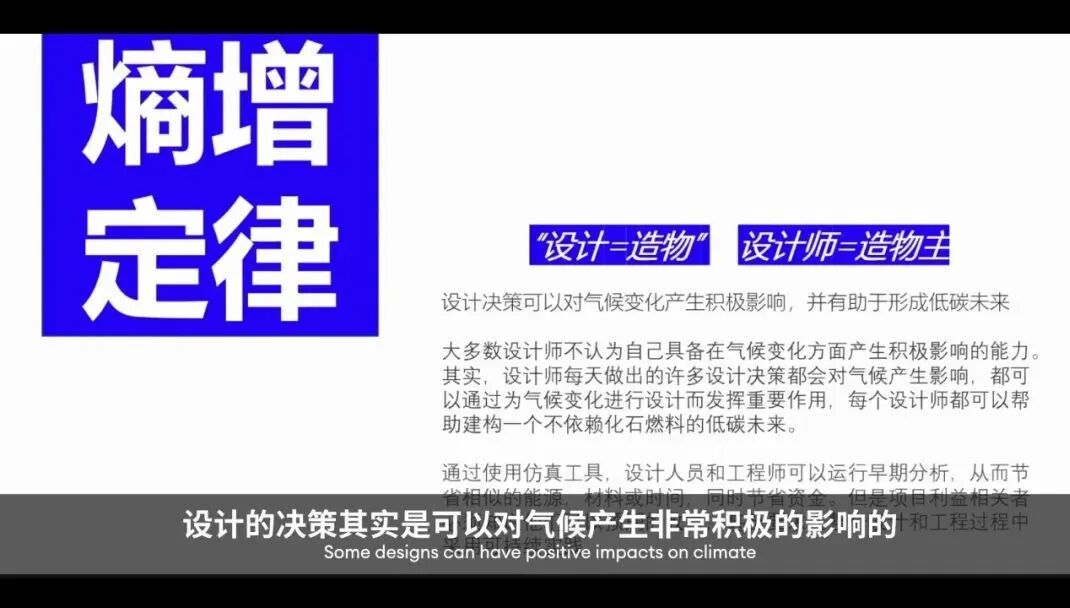 设计决策可以对气候变化产生积极的影响,并有助于形成低碳未来。大多数设计师认为自己不具备在气候变化方面产生积极影响的能力。其实,设计师每天做出的许多设计决策都影响着气候的发展,都可以通过气候变化进行设计而发挥作用,每个设计师都可以帮助构建一个不依赖化石燃料的低碳未来。