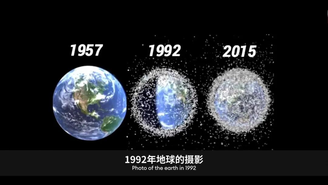 从一张照片可以直观地看出,1957年-2015年地球上垃圾的含量大幅度上涨,人类制造垃圾的水平是非常优秀的,因此绿色设计对地球来说非常重要。