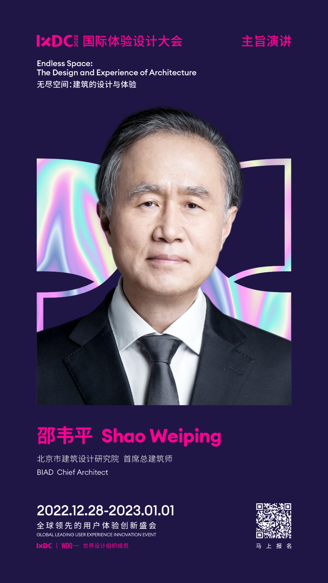 全国工程勘察设计大师,教授级高级工程师,国家一级注册建筑师,硕士、博士后导师,现任北京市建筑设计研究院有限公司首席总建筑师,兼邵韦平工作室主任。国务院特殊津贴专家,清华大学建筑学院兼职教授、硕士生导师,当代中国百名建筑师,北京市有突出贡献的科学、技术、管理人才,北京市首都劳动奖章获得者,北京市杰出设计人才。