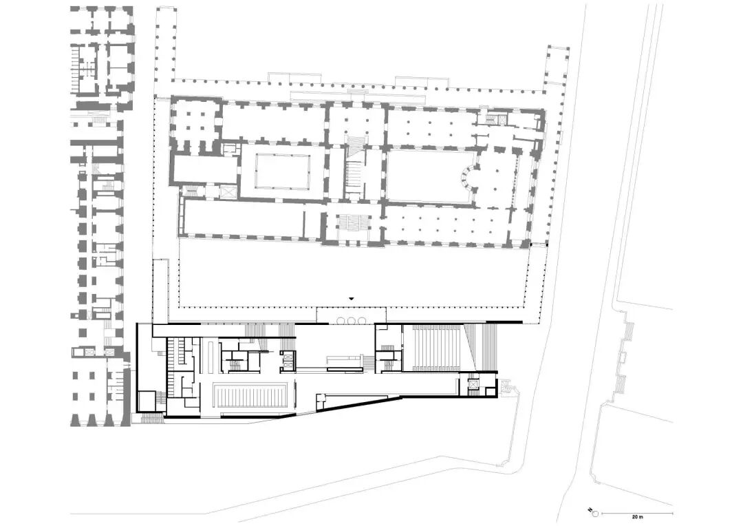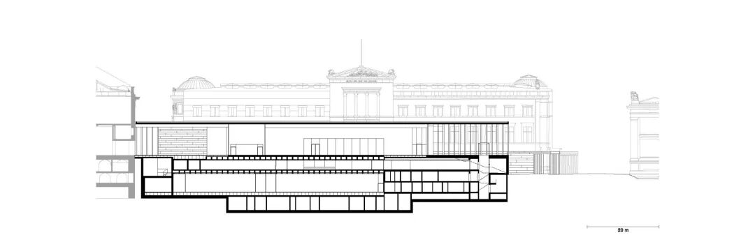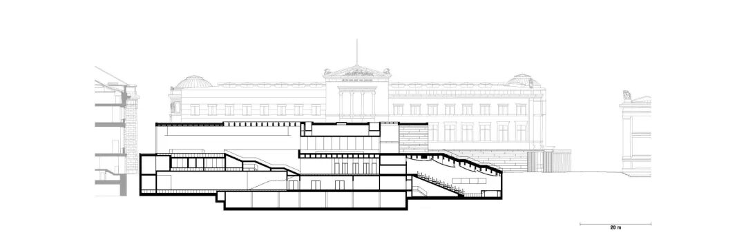 其为博物馆提供的内部功能空间和服务设施能够充分显示出自身的存在感,同时这座建筑的设计目的是重新组织城市关系和博物馆岛内的可达性。