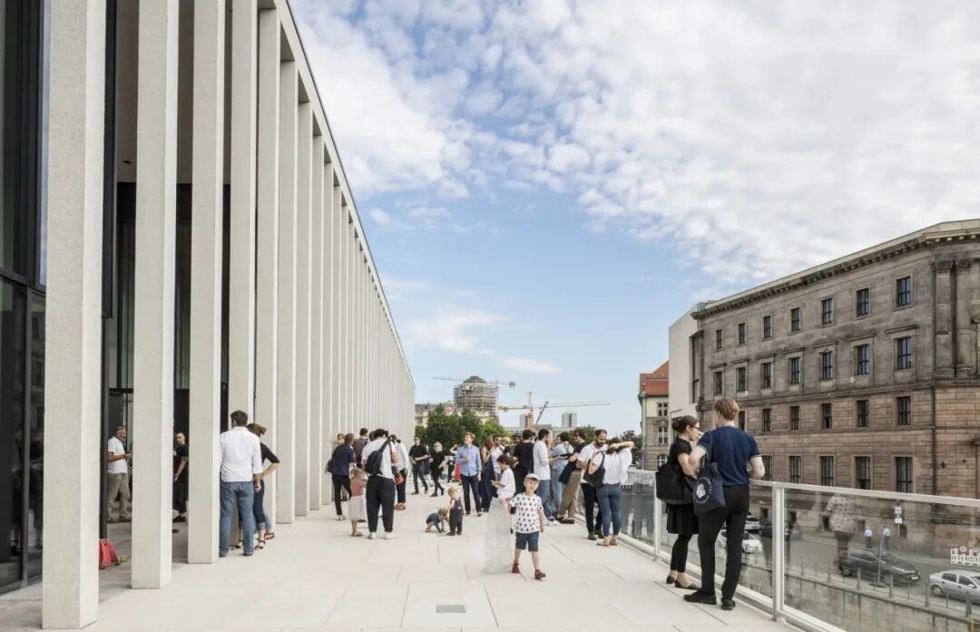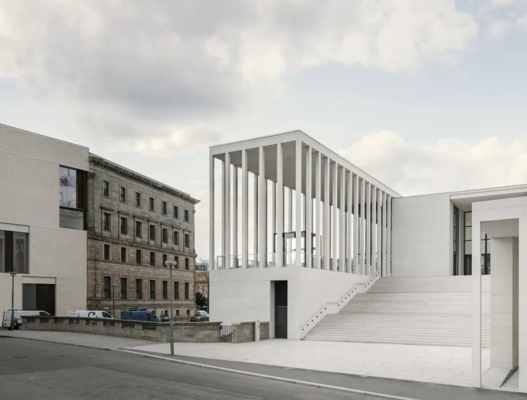 廊柱是James Simon美术馆的标志性空间,整齐的白色廊柱从周边建筑中提取,但又脱离了具体的柱式做法。