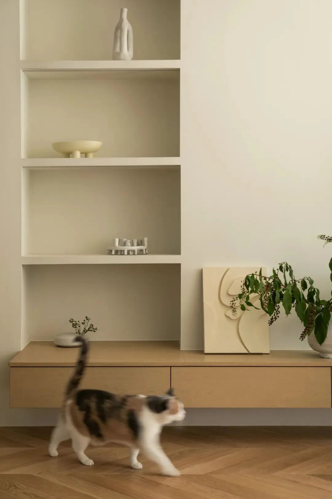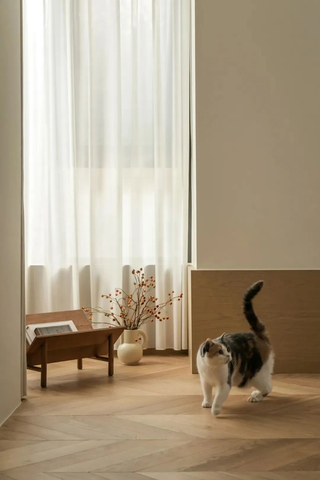 两人三猫和谐共处的奶油色小屋,