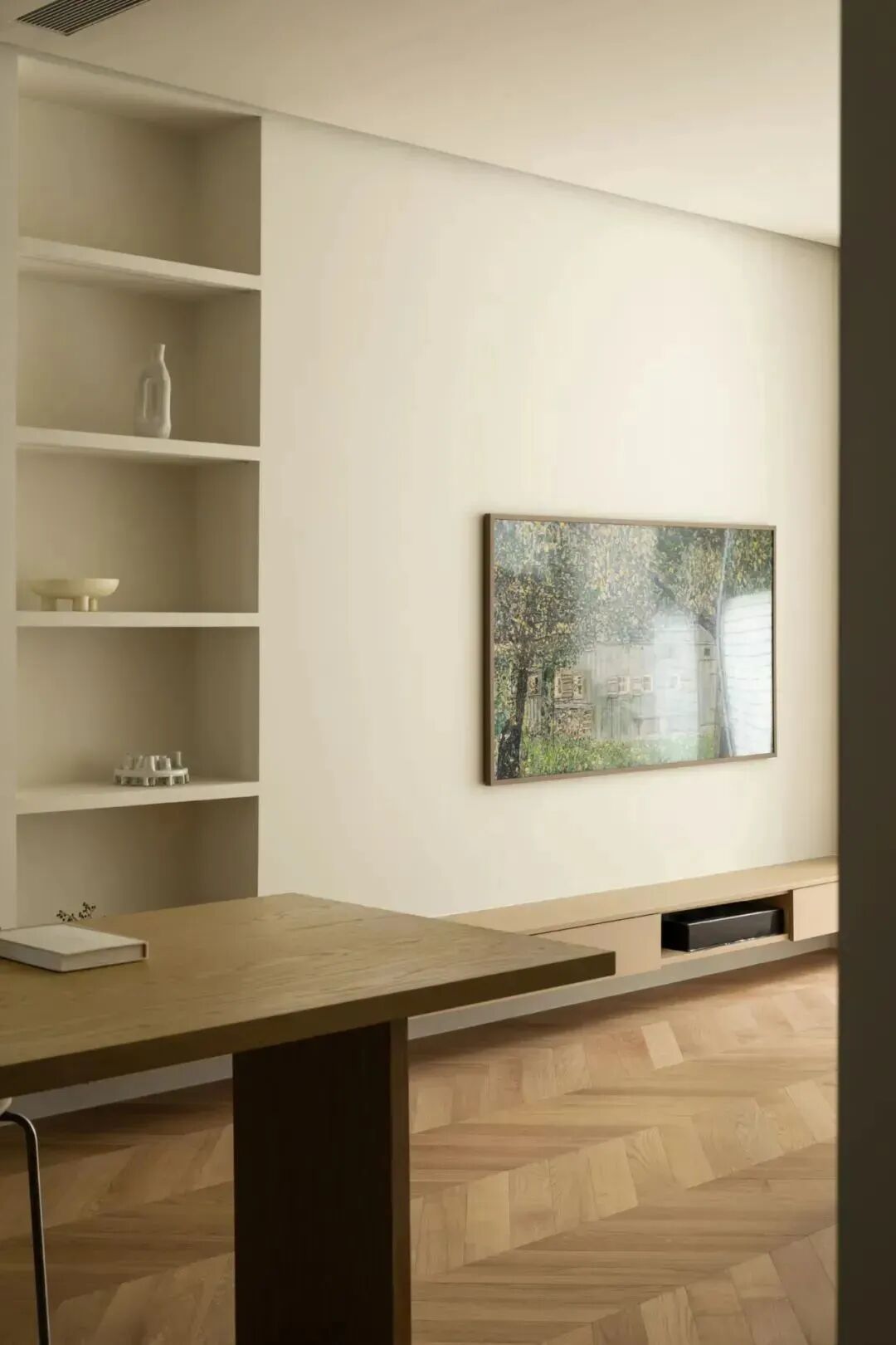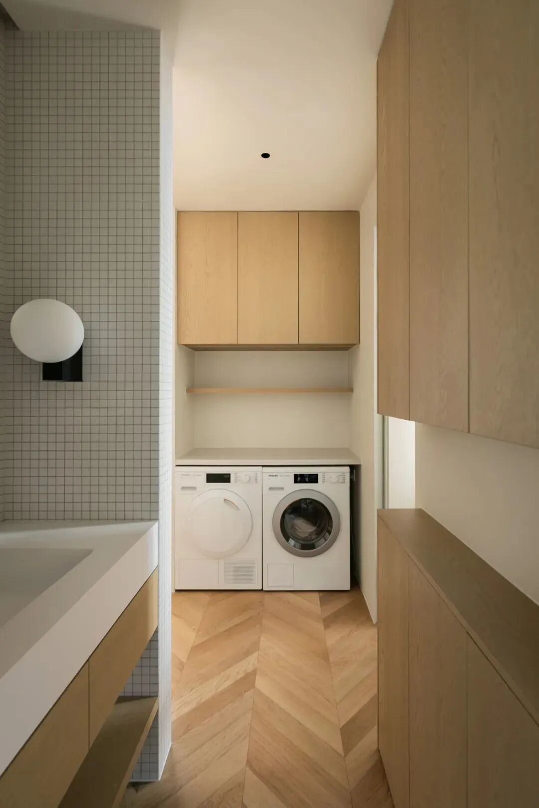 Herringbone Parque's oak flooring and wall plate,