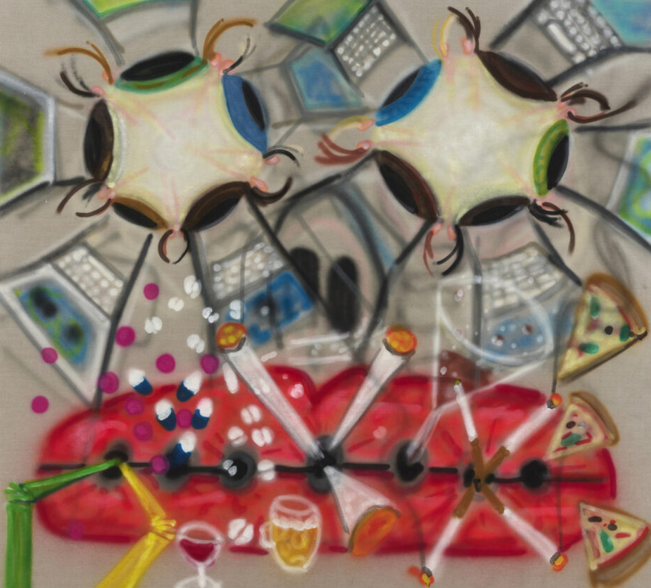 亚娜·尤勒 (Jana Euler) 的作品介于风格自负、怪诞、扭曲、色情化以及经常令人反感的人物形象(包括人类和非人类)之间。欧拉效仿了战后德国艺术家所特有的幽默、无政府主义的态度、超现实主义的执着,以及对绘画领域的双重怀疑和信仰,将他们激进的姿态与对人类状况的野蛮讽刺结合起来。在艺术家的作品中,身体经常以卡通化、卑鄙的肉体或令人不安的脆弱姿势展示。