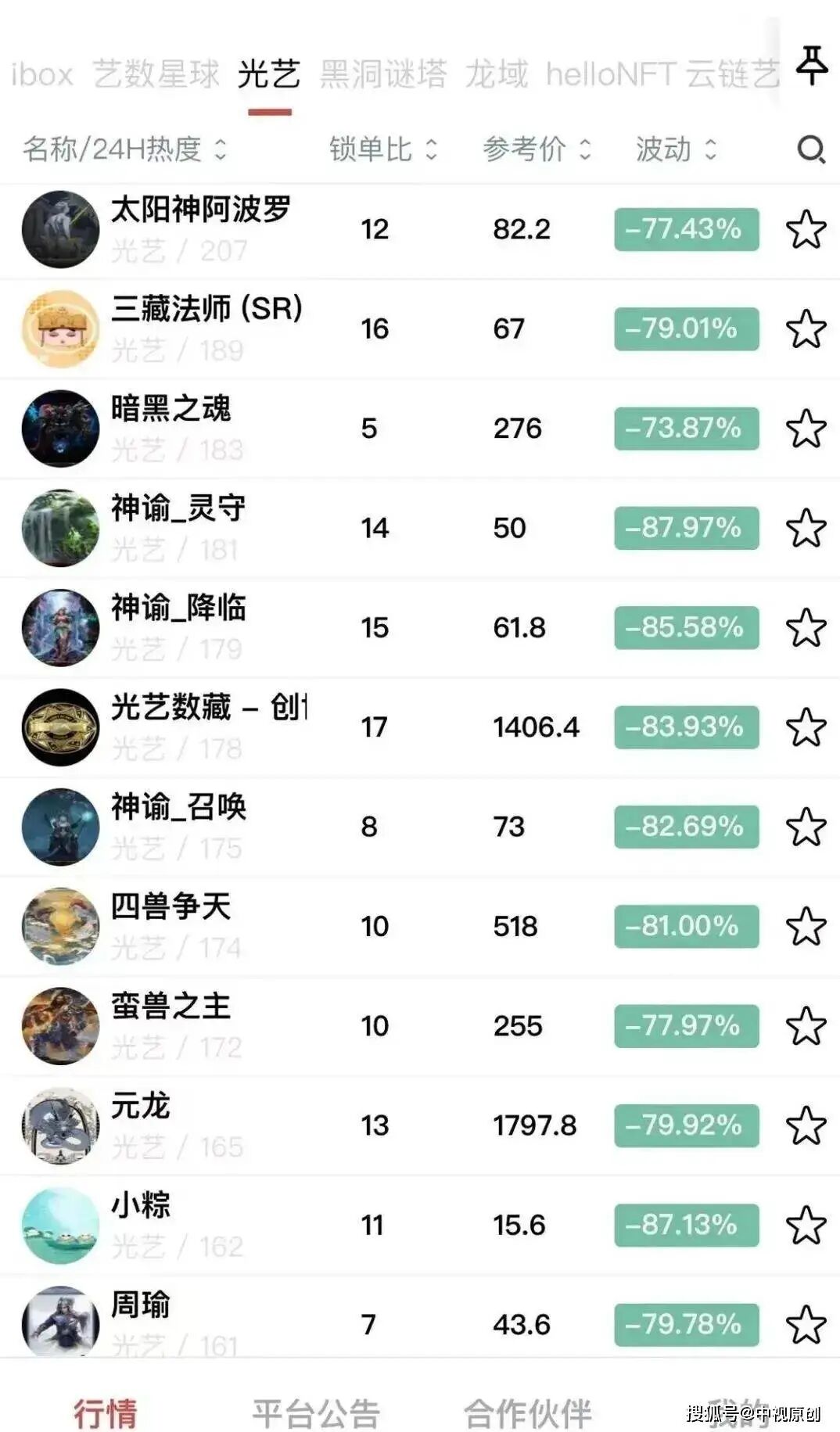 光艺术藏平台藏品暴跌 / 图源:来自网络截图,转自中视原创