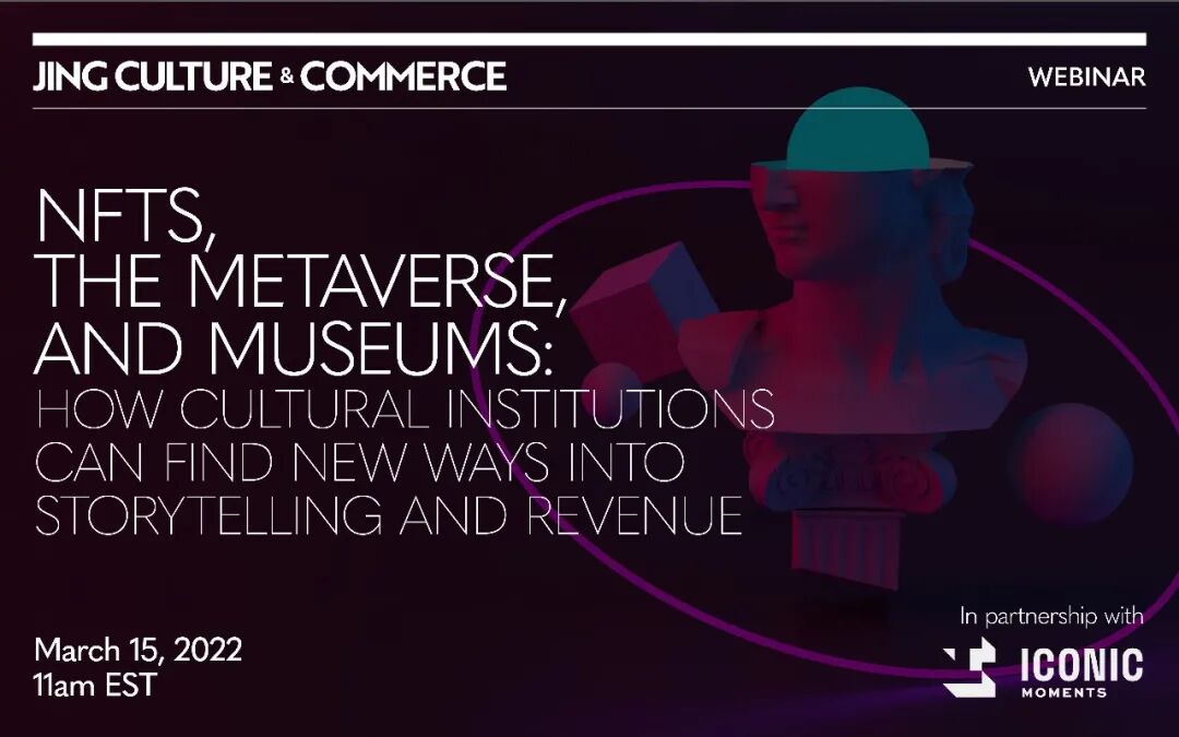 为了拨开迷雾,进一步探索这些问题的,并为博物馆部门进入NFT领域的未知之旅照明方向,JCC将与NFT平台Iconic Moments合作,于美国东部时间 3 月 15 日星期二上午 11 点联合举办一场网络研讨会——“NFT、元宇宙和博物馆:文化机构能如何找到表达与创收的新方式”(“NFTs, The Metaverse, and Museums: How Cultural Institutions Can Find New Ways Into Storytelling And Revenue”)。