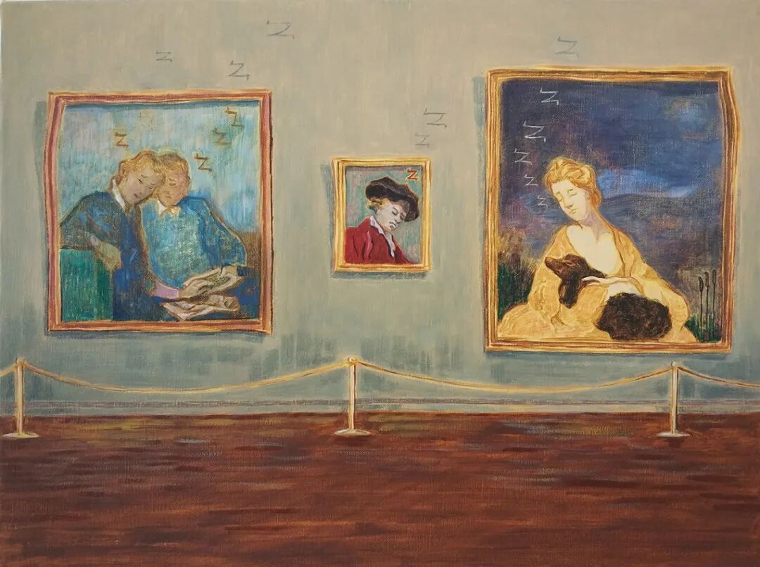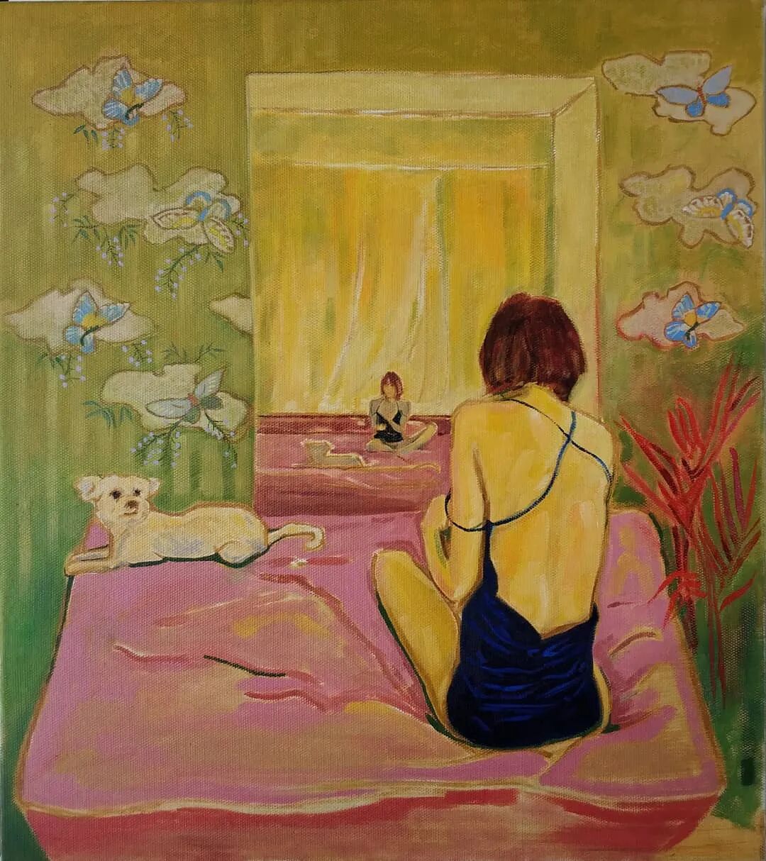 杰西·达扬多数画作中的场景都来自日常的室内环境,那些空间内弥散的回忆、想象与生活经验总能激发他的创作欲望。
