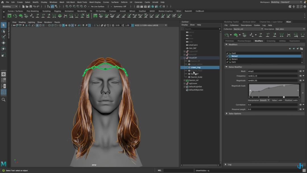 一旦我对上面的结果满意我会进行毛发制作,Xgen对于角色模型设计师来说是一个必不可少的工具。