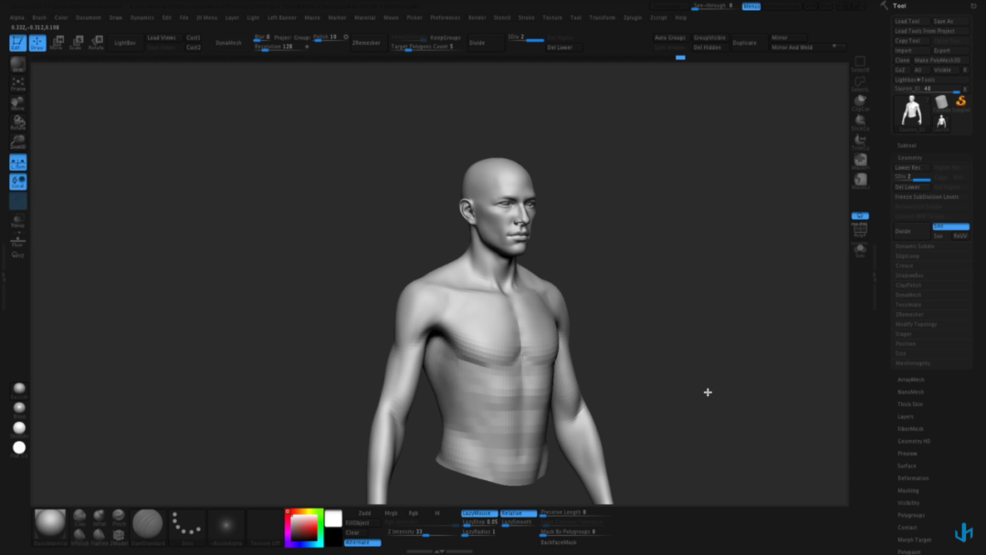 我从一个布线准确的基本体开始制作,目的是更加方便快捷。我没有在ZB中花费太多时间,首先在ZB中完成大型的制作,尽快进入到maya中看效果,再根据效果进行修改。