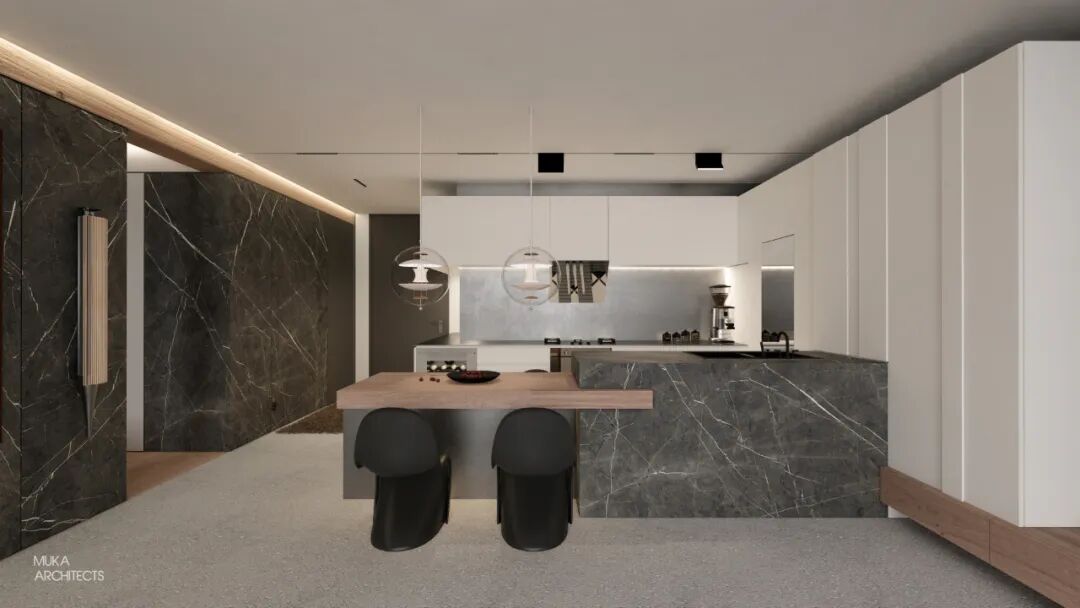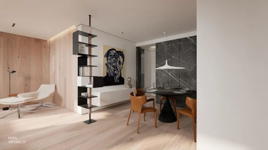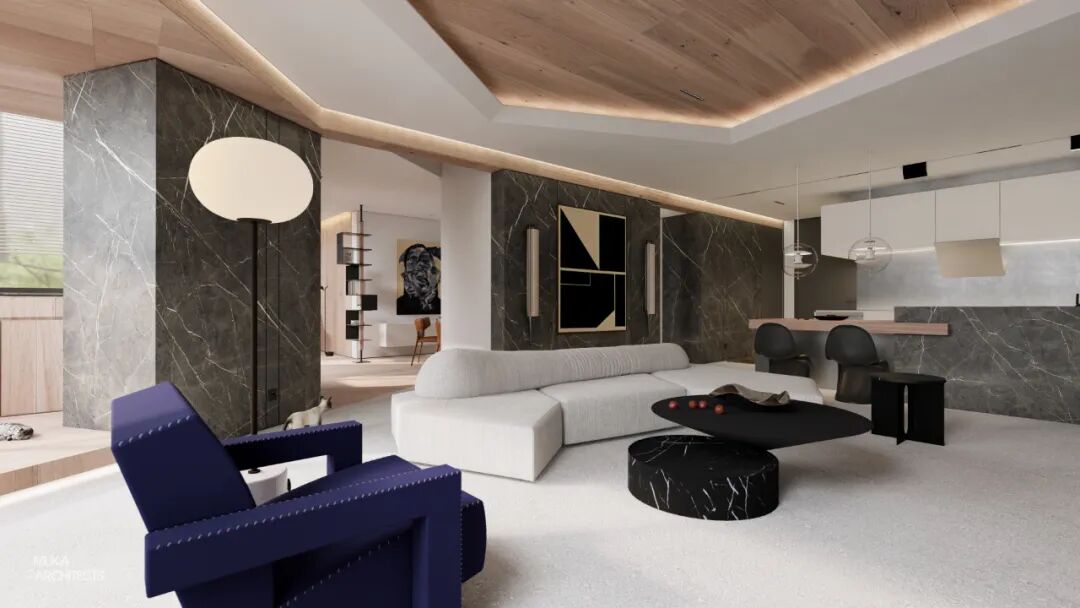 “规则中置入无序,硬朗中保有温度. ”这也是我们对屋主职业属性与人格魅力最佳的空间匹配与设计回应。