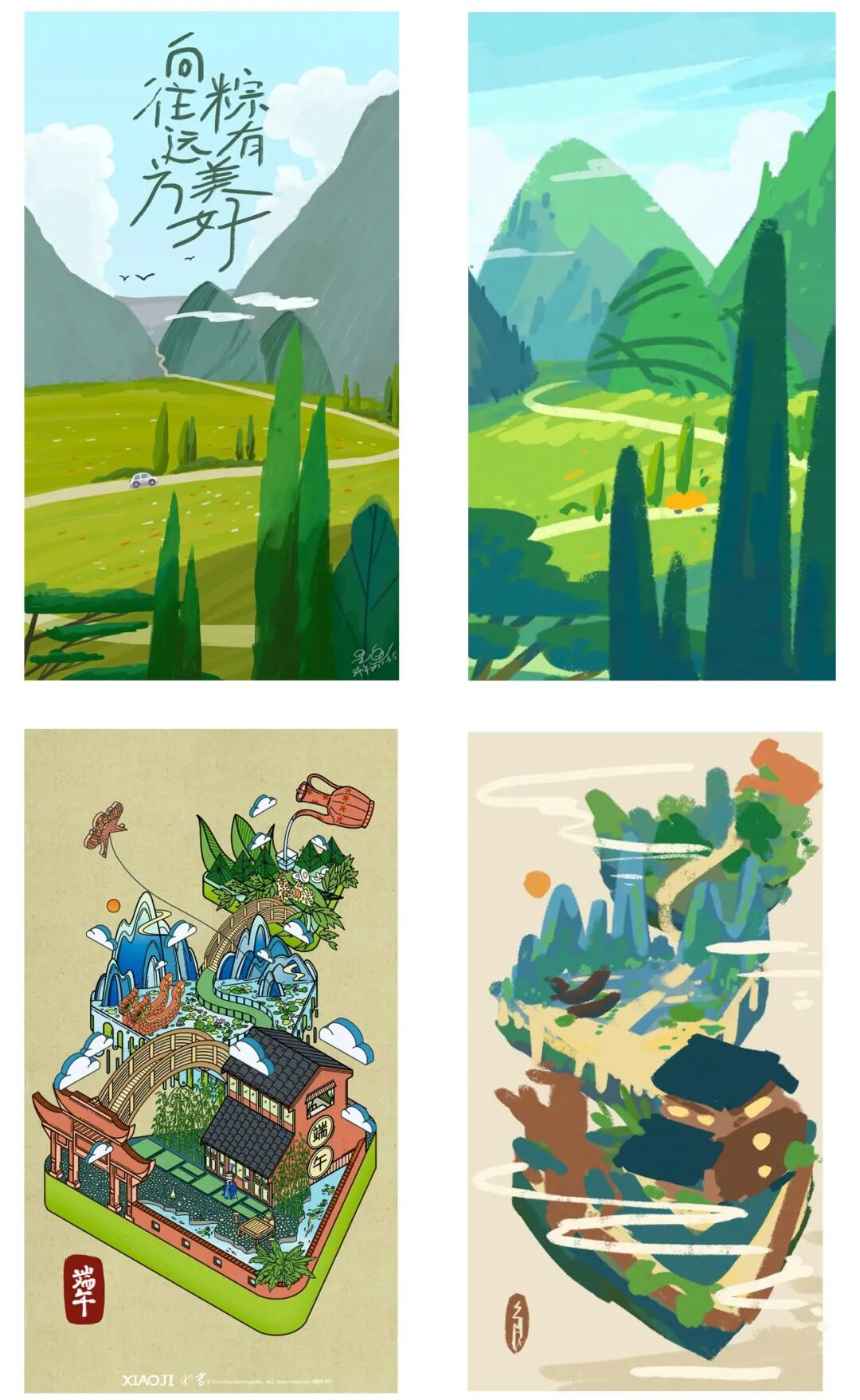 这两张画在画面中表现出的问题都是颜色有点脏,