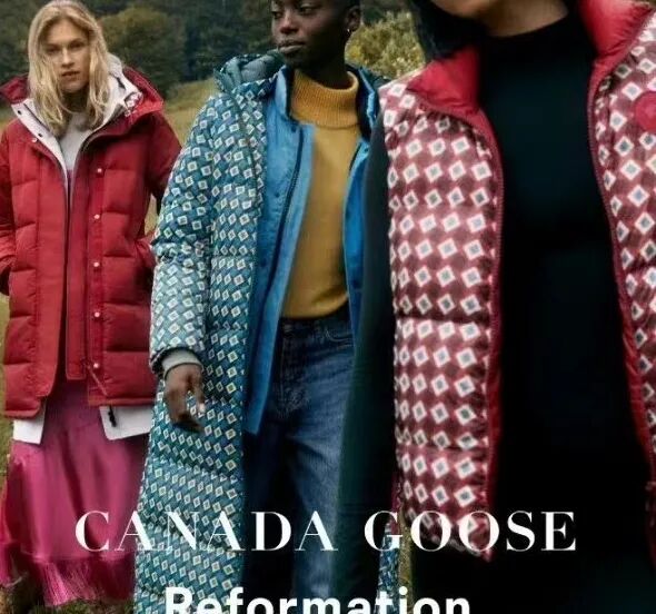 羽绒服届的爱马仕加拿大鹅近期和美国的时尚品牌Reformation推出了一款联名款系列,一改平日里的单一配色和简约风格,以碎花设计与鲜艳的配色为主。