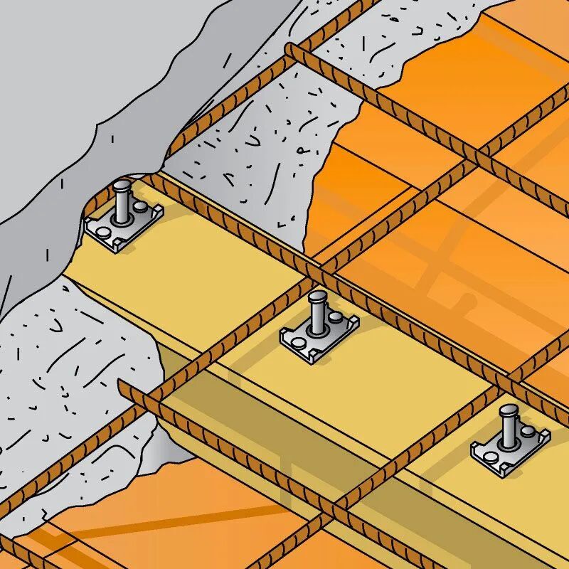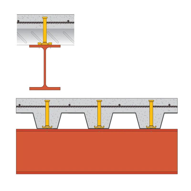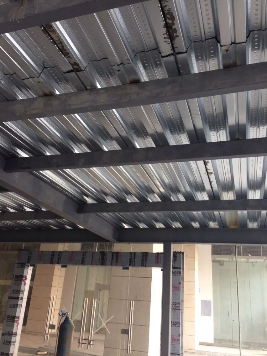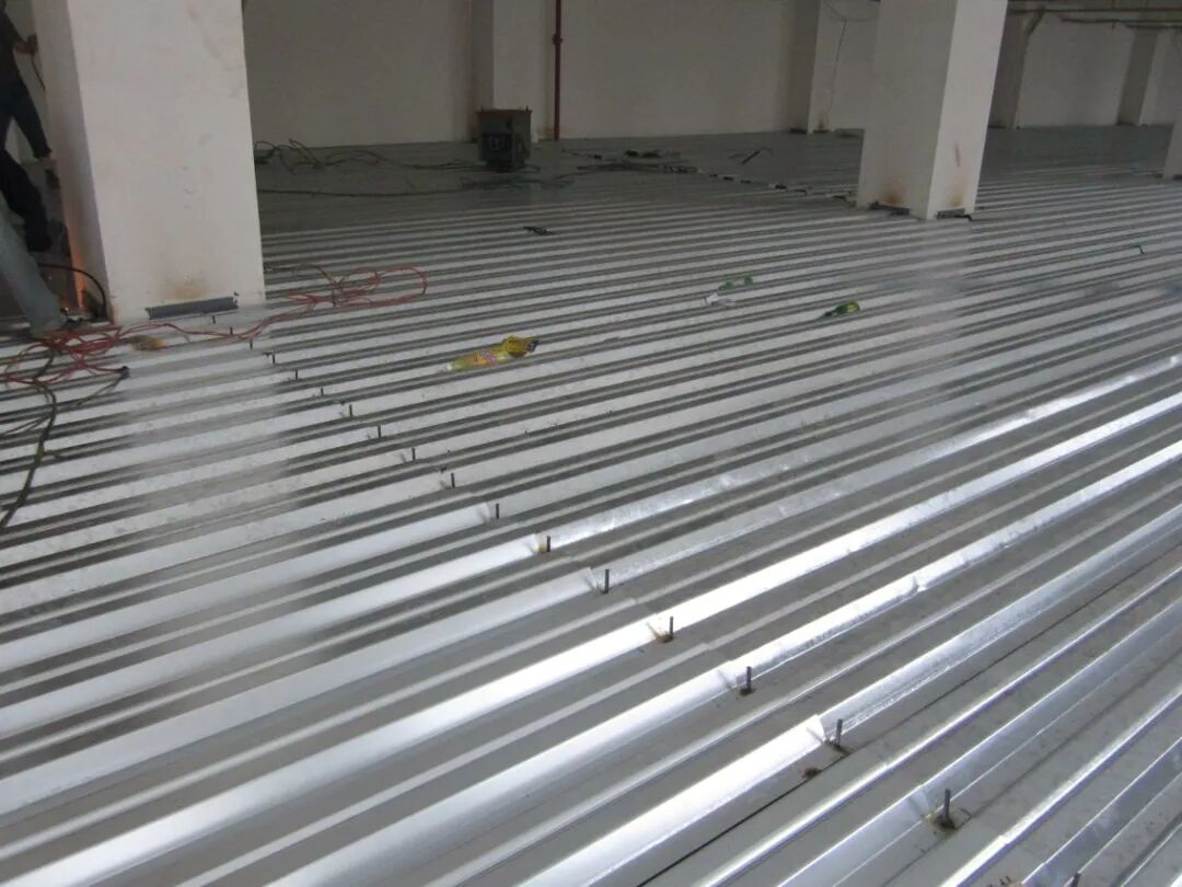 铺设压型钢板,用栓钉固定钢板和钢梁△