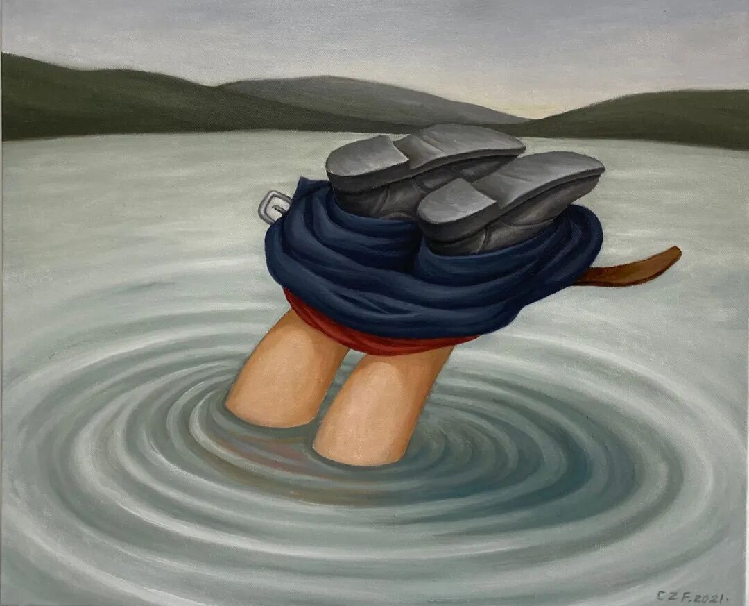 《无题》,曹再飞,33*40cm,布面油画,2022《抱》,曹再飞,60*50cm,布面油画,2022