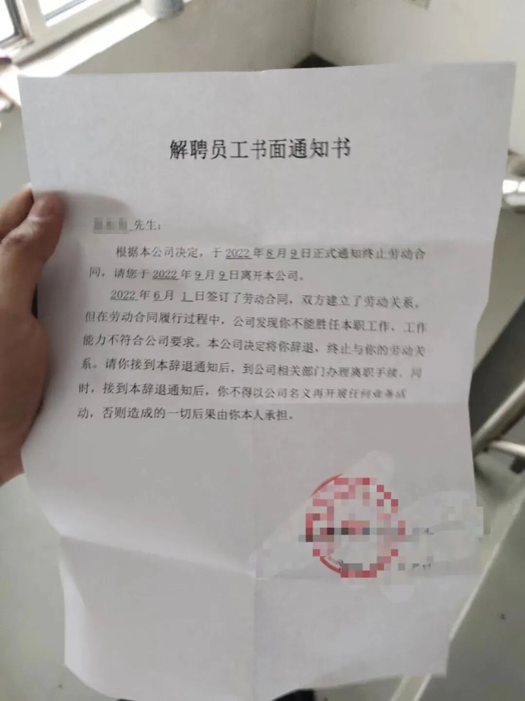 这老板简直就是没把设计师当人看,最后给大家看看该公司解聘员工书面通知书!