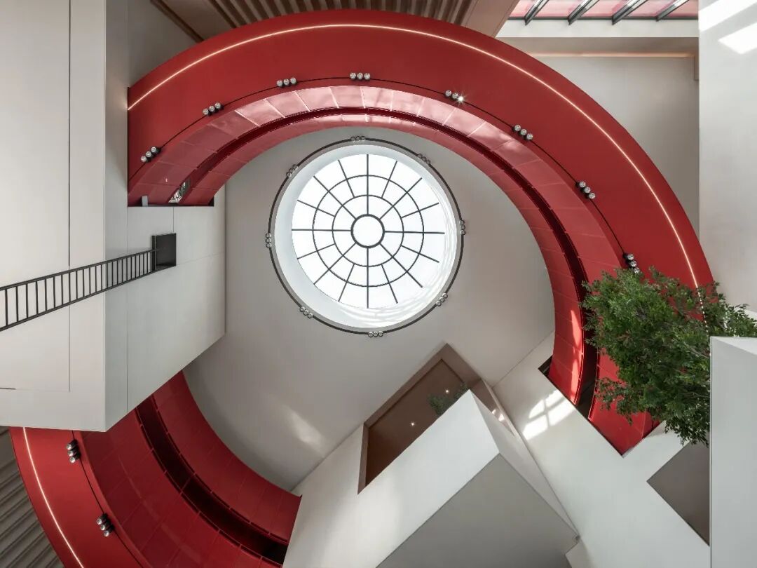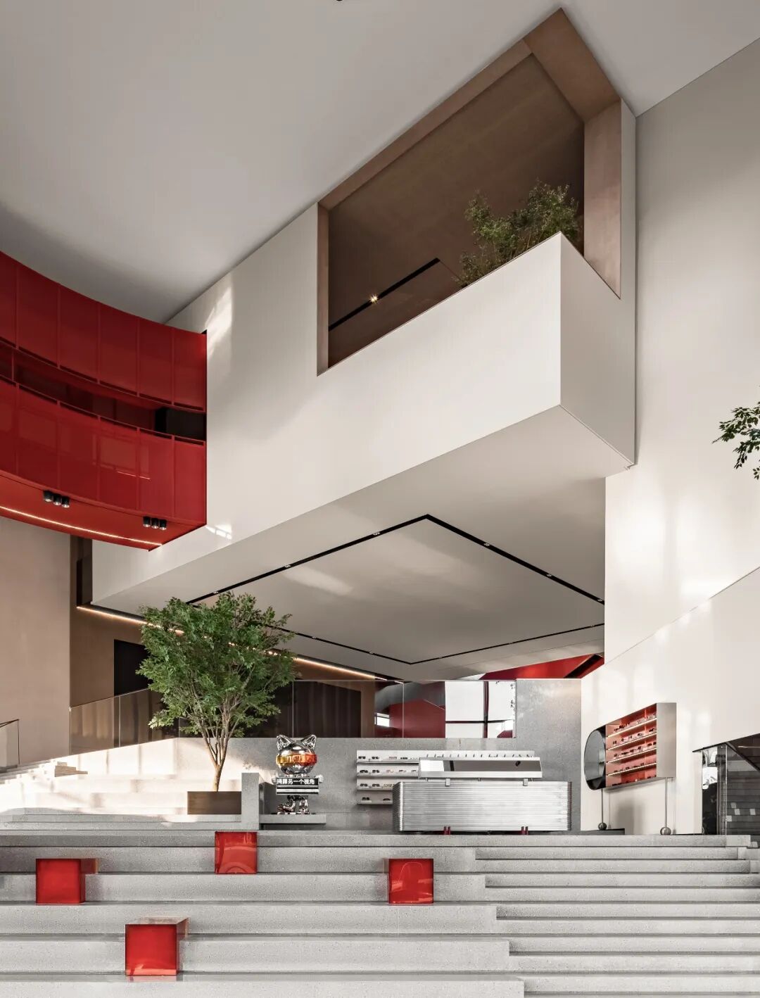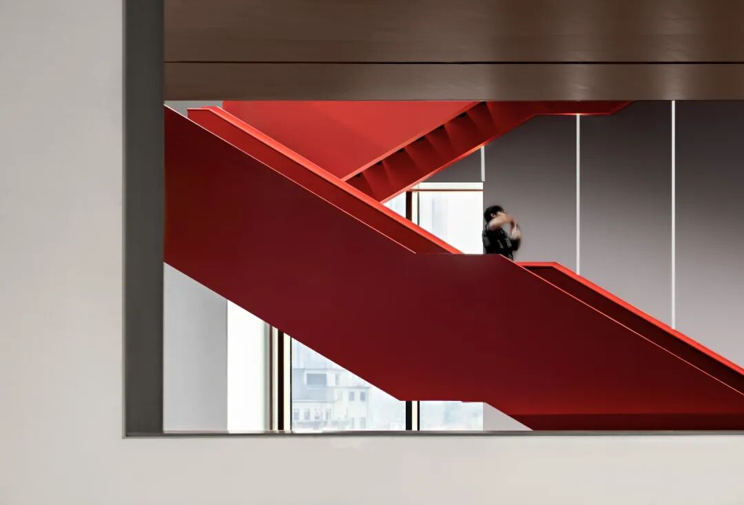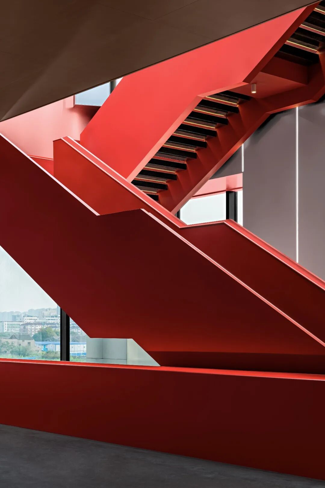 The landscape art staircase with simple shape reflects classic meaning between the echo of "red" and "grey", creating a sense of calm, fashion and pleasure.
