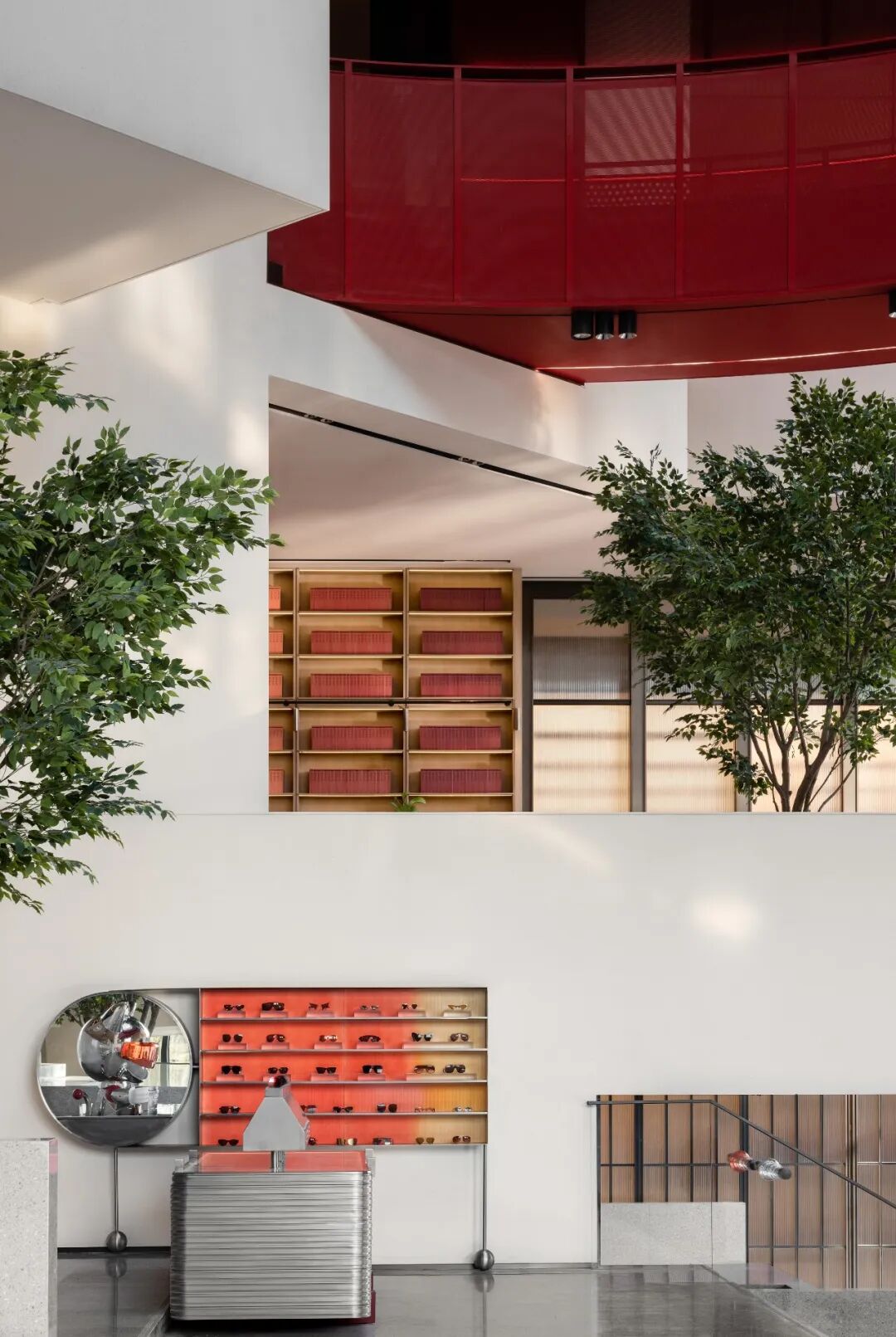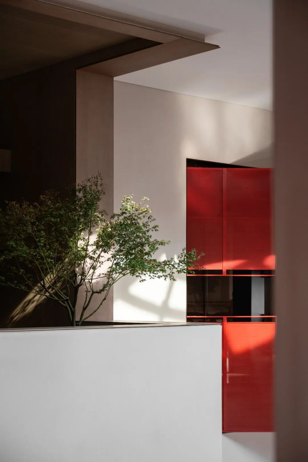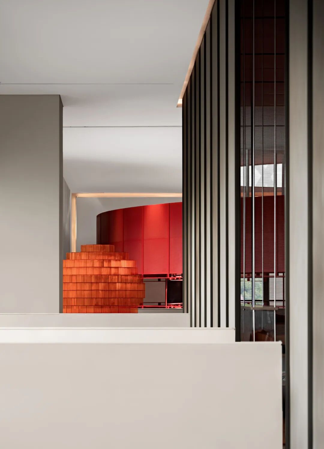The landscape art staircase with simple shape reflects classic meaning between the echo of "red" and "grey", creating a sense of calm, fashion and pleasure.