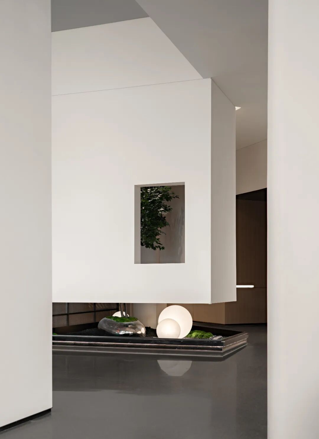 以 “有度” 着意于虚实相生的意境,以“极简”留白引人深思,通过简约儒雅的色彩、亲和自然的材料明快扼要地勾勒出流畅的沉浸式空间。