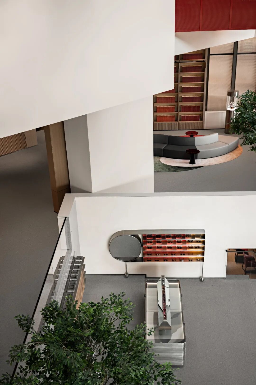 设计的初衷,探索多元因素并置共存。关乎人的活动及人与空间的微妙联结;映射各维度的客体存在。延续建筑景观的“棱镜”概念,至室内形成无边界联合,共同打造一个沉浸式的未来生活体验馆。