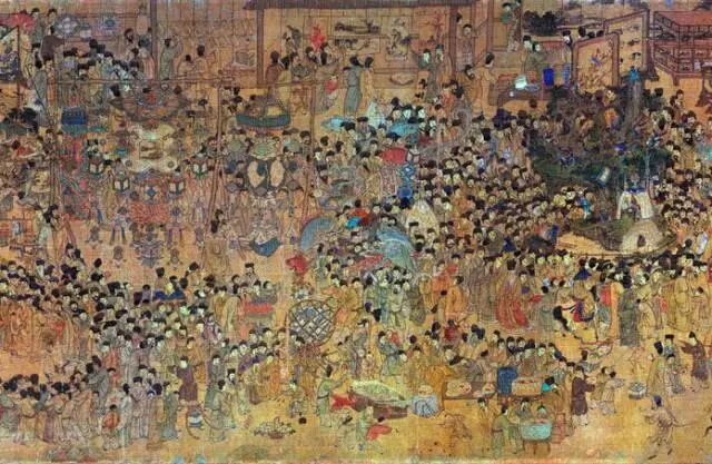 而且文玩市场里也出现了家具的影子,比如绘制于万历至天启年间的《上元灯彩图》,描述的就是当时南京上元节集市的景色。