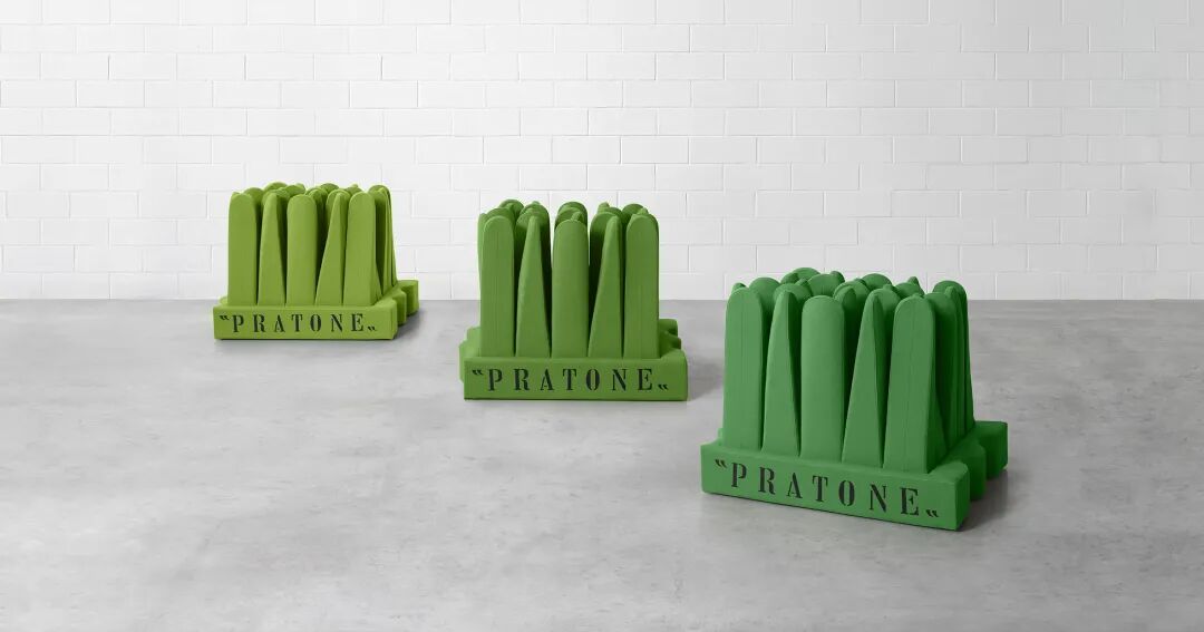 今年PRATONE迎来了它的五十岁生日,Gufram也用三种不同绿色(GREEN,GREENER,GREENEST)的布料覆盖椅身,推出了纪念版Pratone。