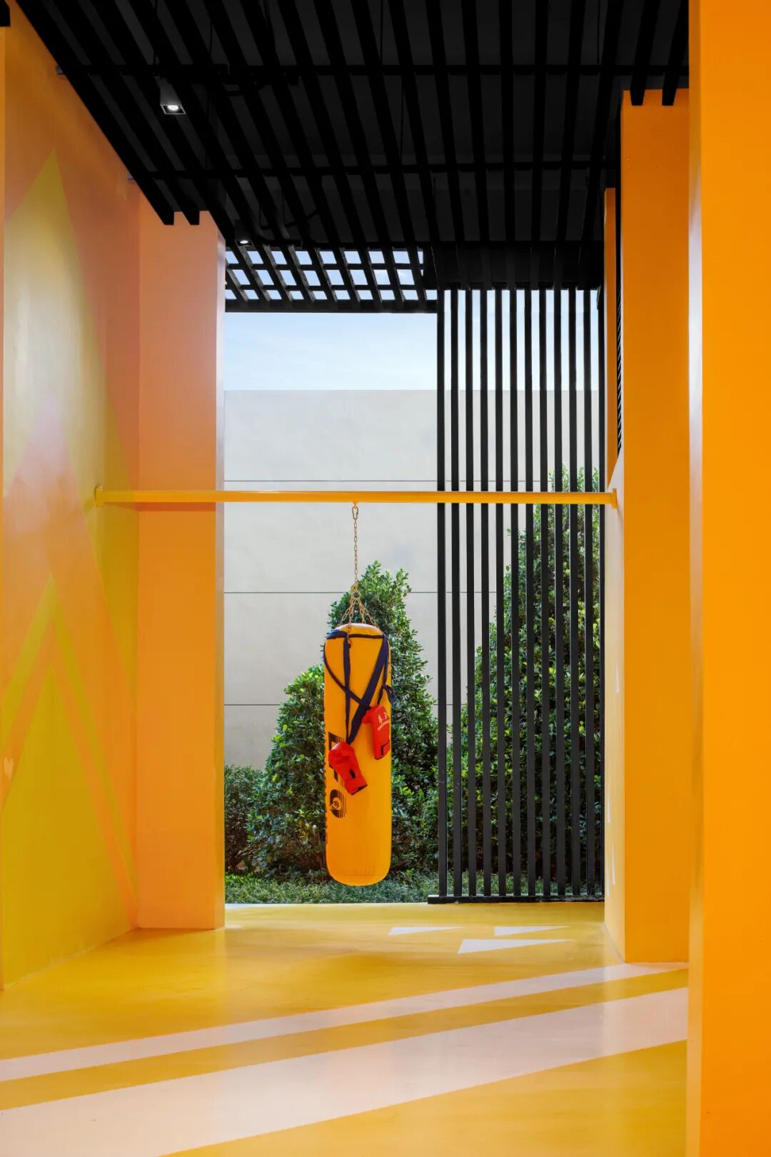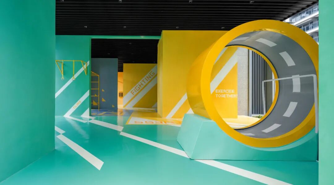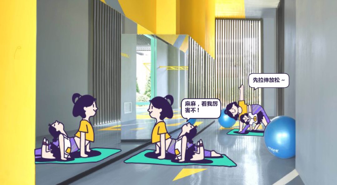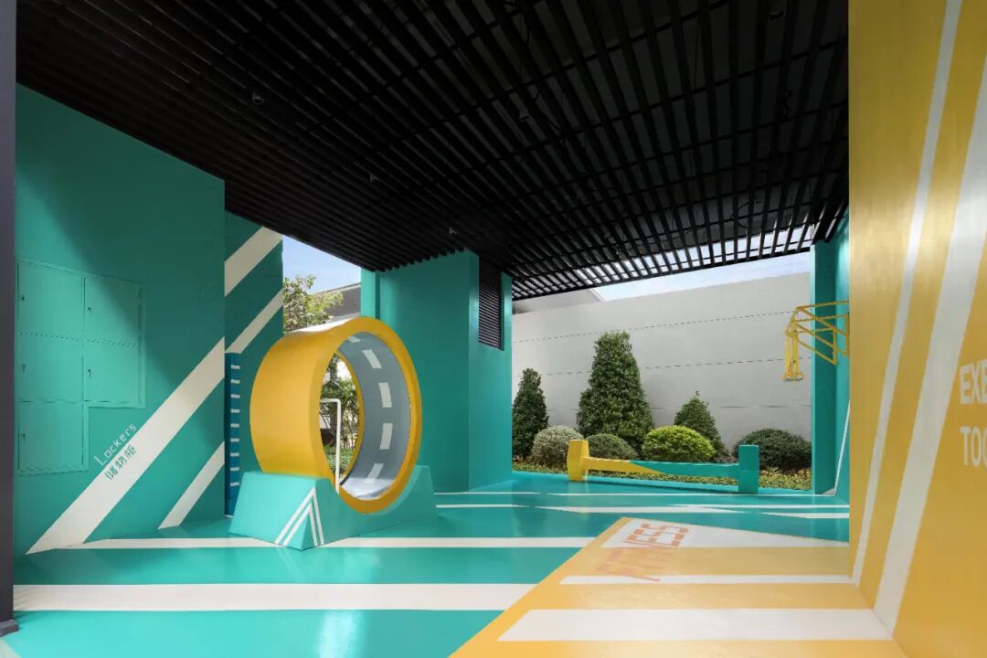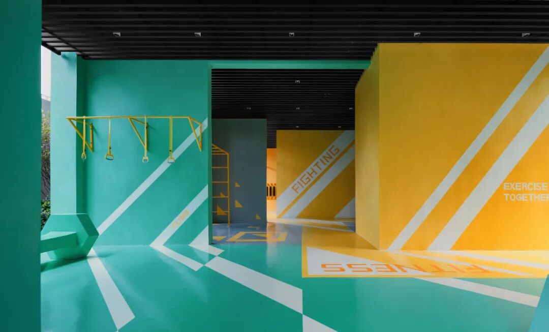 根据如今健身生活习惯与生活场景需求,设计师拟定适用居住区架空层的健身场景,确定以青年家庭的运动需求作为本次设计尝试内容。通过色块体系的表达以及各类专项运动划分整个空间功能板块。目的打造家庭式健身互动空间,营造充满个性与潮流感的专业化健身空间。