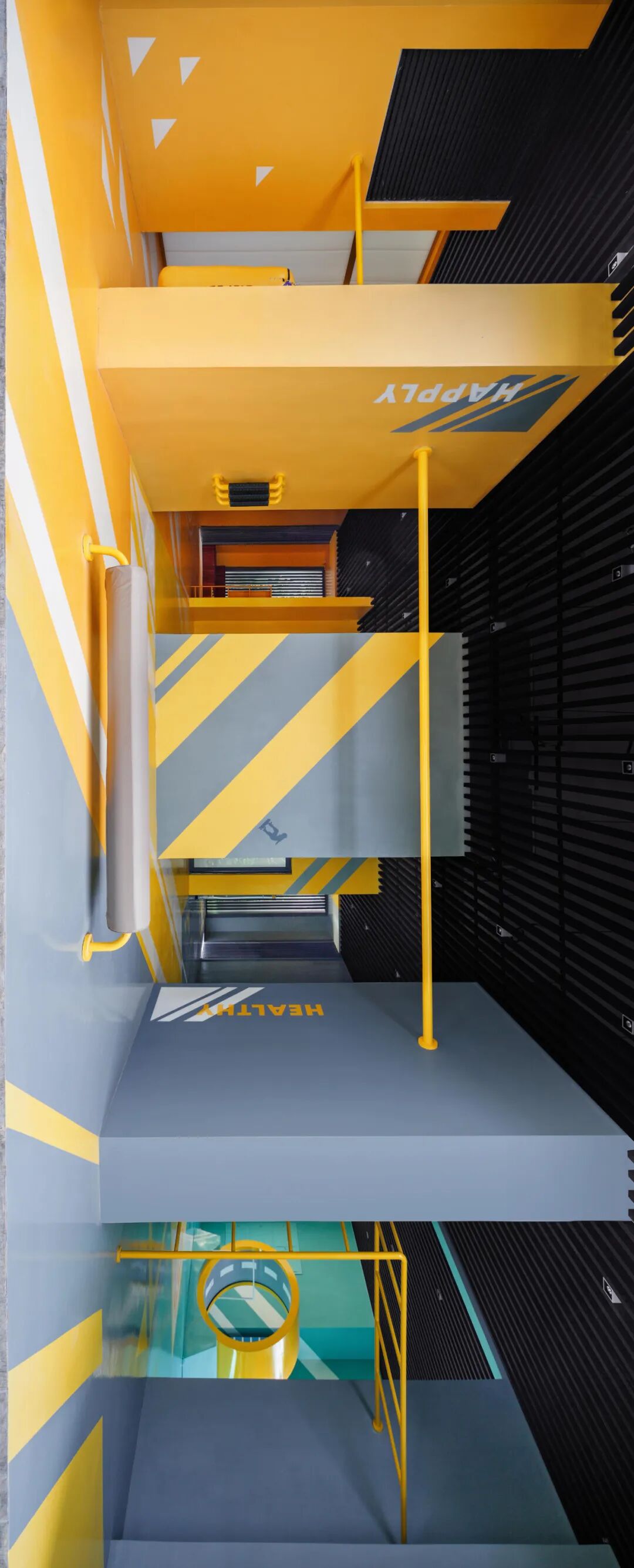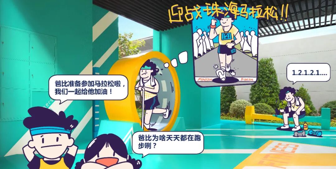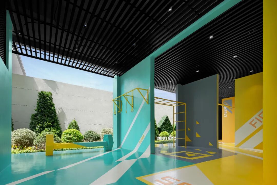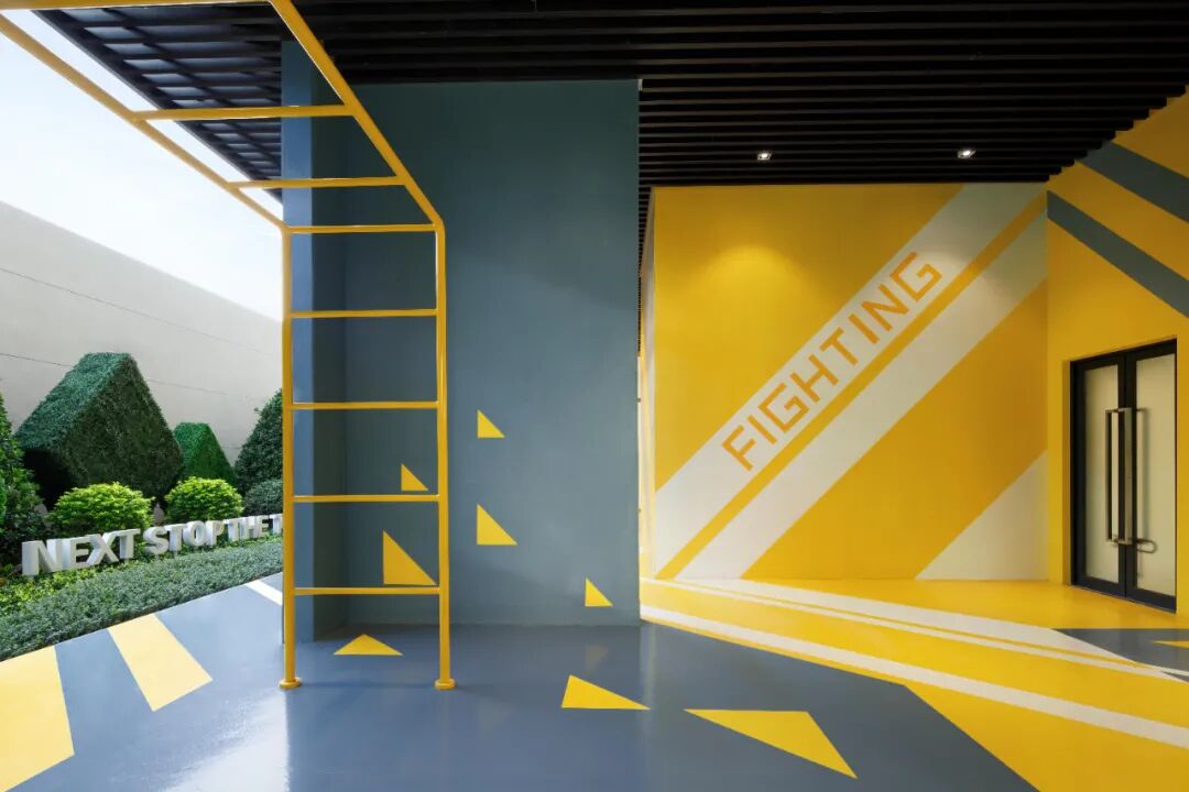 根据如今健身生活习惯与生活场景需求,设计师拟定适用居住区架空层的健身场景,确定以青年家庭的运动需求作为本次设计尝试内容。通过色块体系的表达以及各类专项运动划分整个空间功能板块。目的打造家庭式健身互动空间,营造充满个性与潮流感的专业化健身空间。