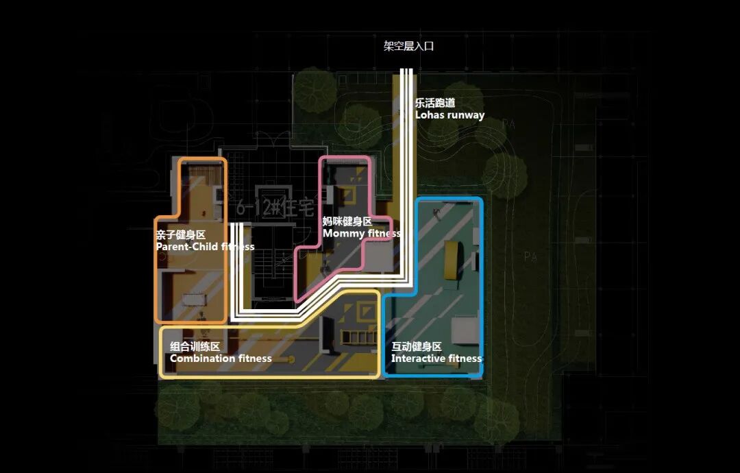 我们通过架空层的空间利用,让健身场景融入“居家”活动的范畴,对美好生活的规划,让运动健身已经成为生活必不可少的一部分,做到弥补家门口健身活动空间的缺失。