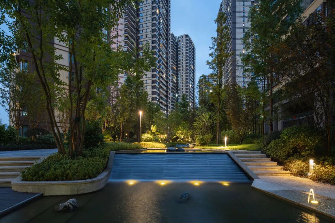 天阅·嘉陵整体景观设计理念以嘉陵江色为形,“山水”为题,以山赋形,以水为境,从诗意山水画卷中提取景观设计元素--融情、融景、融境;营造一副“紫明山水,卧龙盘溪”山水意境的生活画卷。