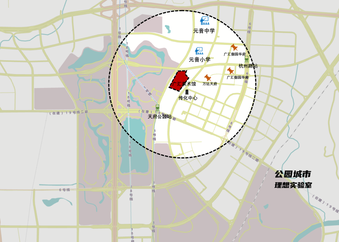 周边建有广汇·御园华府、万达华府、万达华庭、天府未来城、中海天府里等多处住宅小区,人群聚集,居住氛围浓厚。