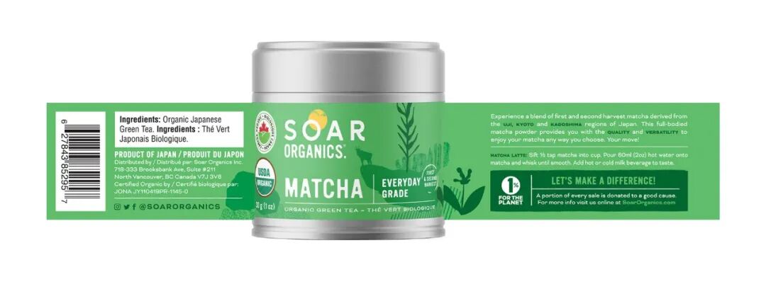 Soar Organics 生产优质抹茶和焙茶产品,促进清洁饮食以丰富全身健康。他们从以优质风土和真实性著称的种植区精心采购经过认证的有机原料,确保所有产品的生产都能产生最佳效果。他们致力于可持续发展,通过各种社会和环境项目回馈地球,维护他们的价值观。