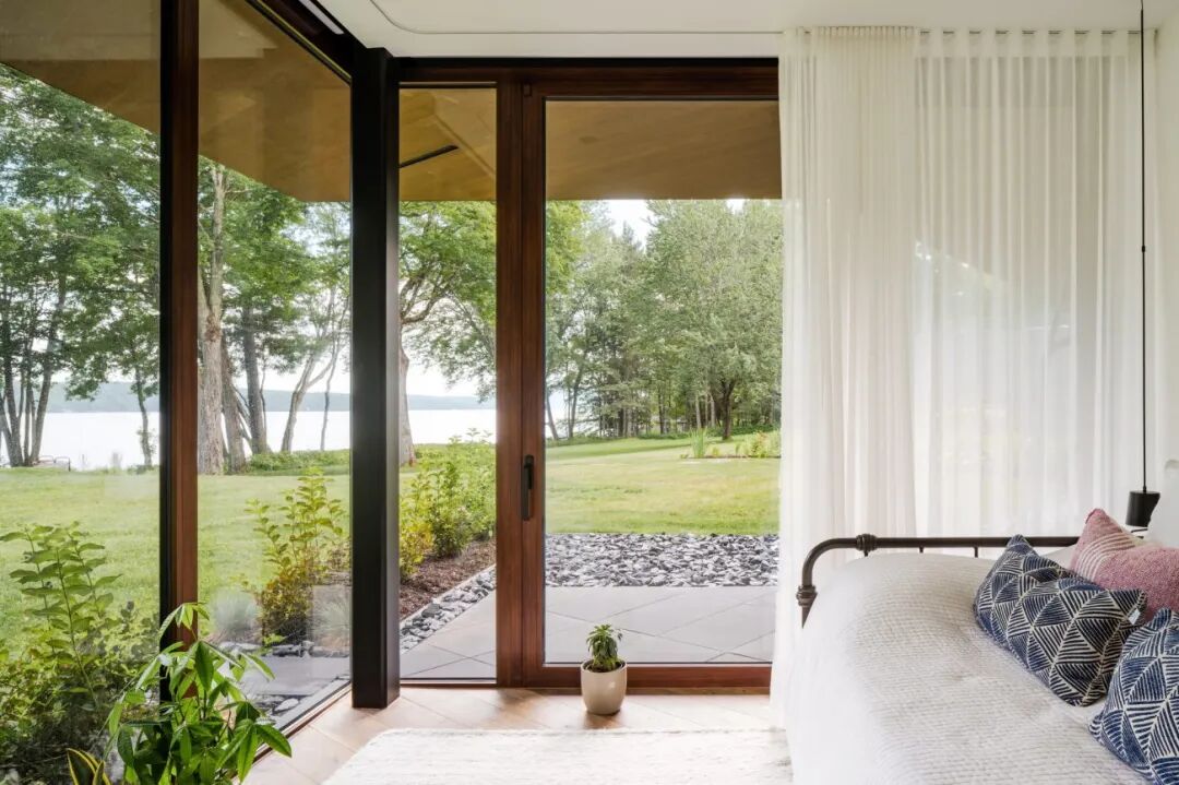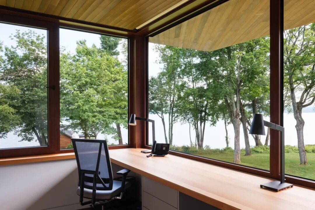 Located on the shores of prestigious Lake Memphremagog, in the Eastern Townships Region of Quebec, this residence sits atop the lake’s steep shores, projecting itself onto a peaceful bay and providing impressive views of the surrounding environment.