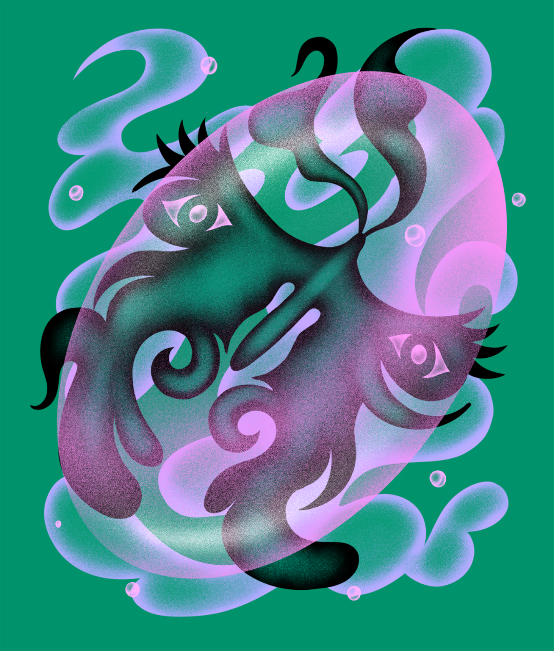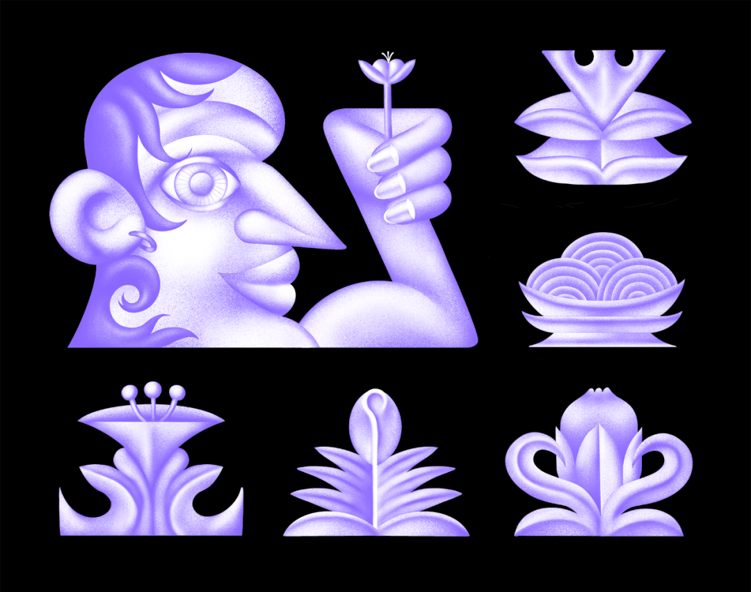 独具个人特色的插画是 Chloé 作品中的核心元素和记忆点,她的插画本身并不复杂,但是通过充满想象力的形态和“泡沫感”十足的色彩填充,为她的作品增添许多魅力,为观者营造出独特的视觉体验。