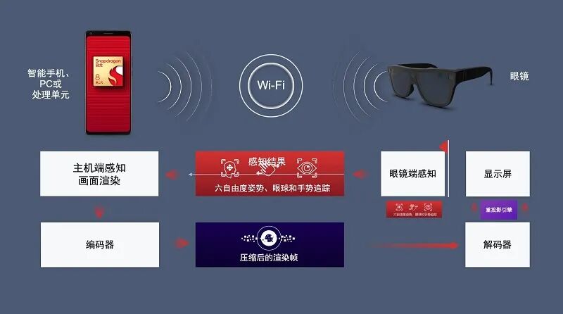 ▲基于骁龙AR2打造的无线AR眼镜工作流程