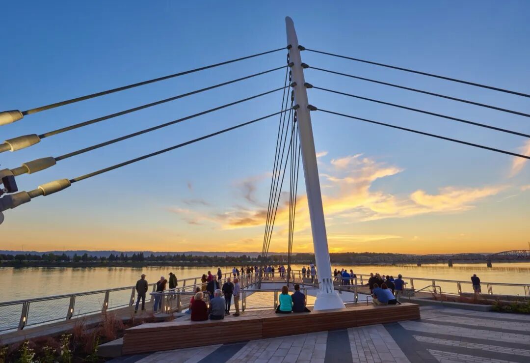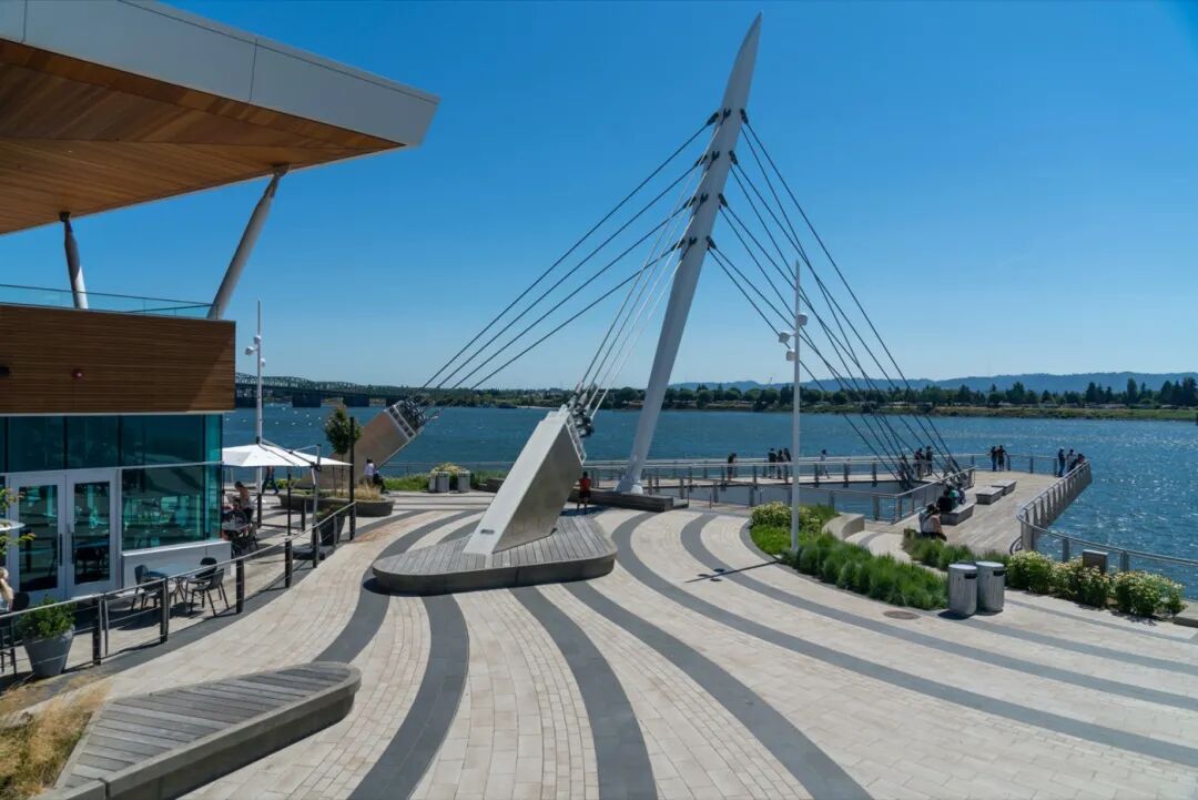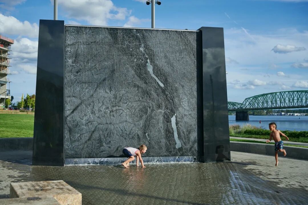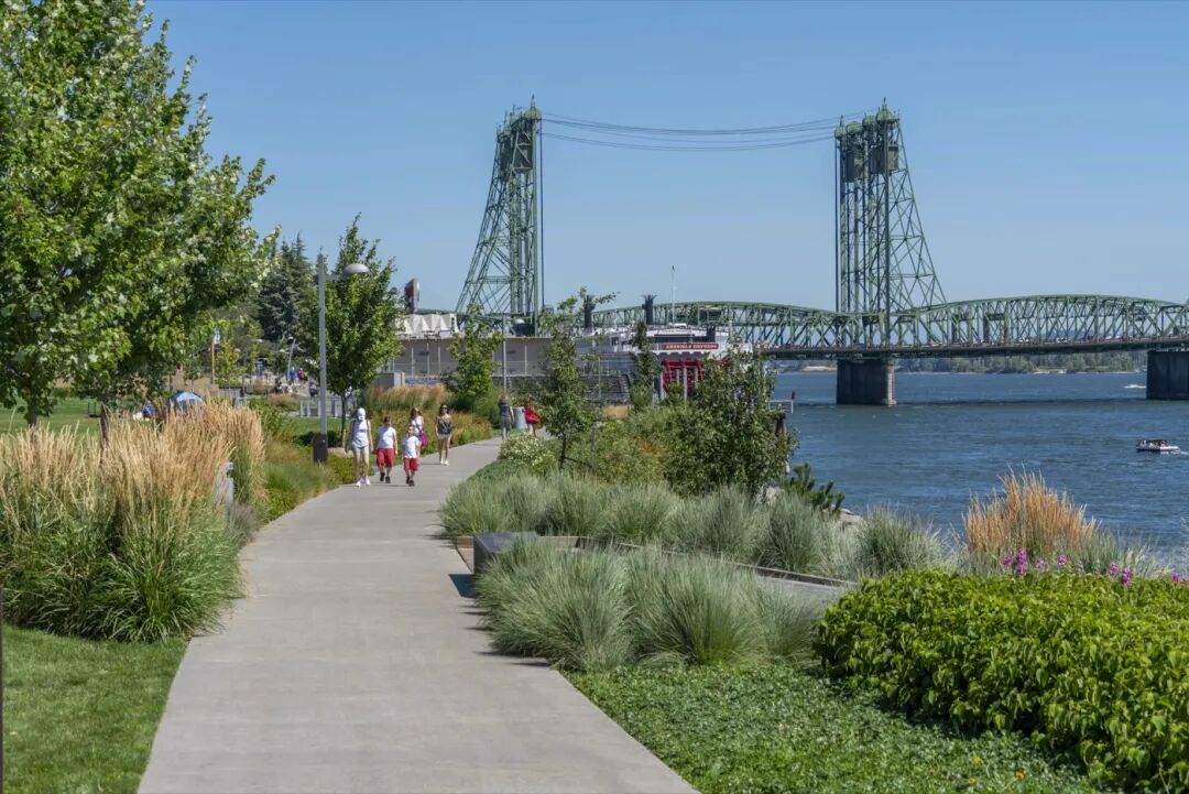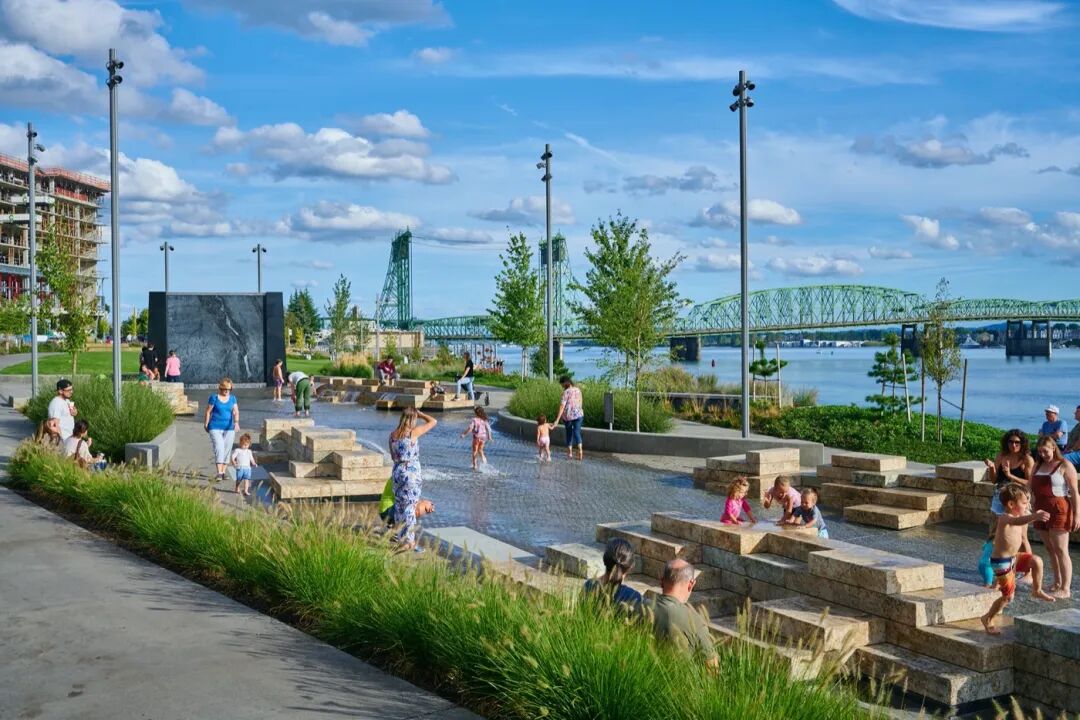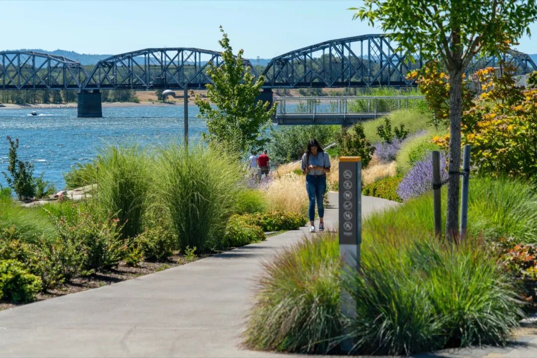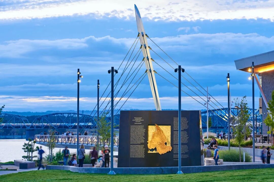 The park is a three-hectare model for urban transformation and placemaking. The project goalto revive the former industrial siteconnects historic downtown and Esther Short Park with the waterfront. Over 75 years as a working river cut off access, leaving the foreshore contaminated.Reconfigured existing rail line infrastructure opened access to the waterfront, expanding open space by connecting to existing park amenities.