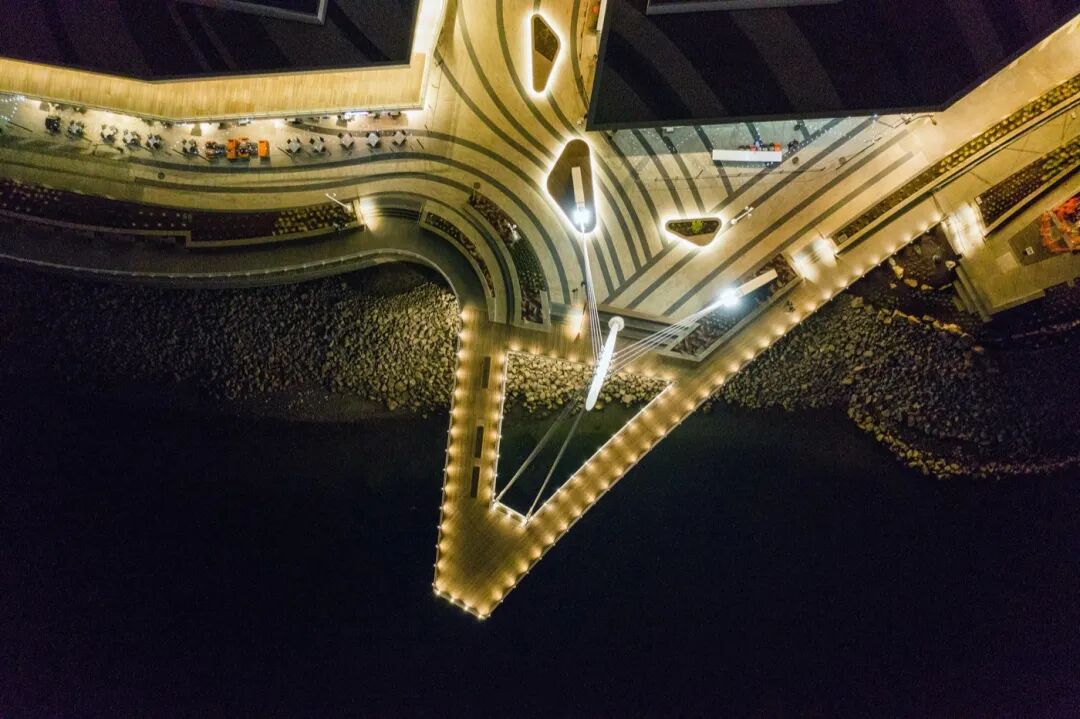 公园的一大特色是格兰特街码头,这是一个在水面上突出超过 30 米的斜拉结构。这个概念源于河流的持久精神和功能,提供娱乐和输送工业船只。该形式设计有一个开放的中心 - 并且没有水中结构 - 这是以保持不受阻碍的水生物种迁移并最大限度地减少对河床的破坏。游人有机会在没有离开陆地的情况下感受在水上的快感。